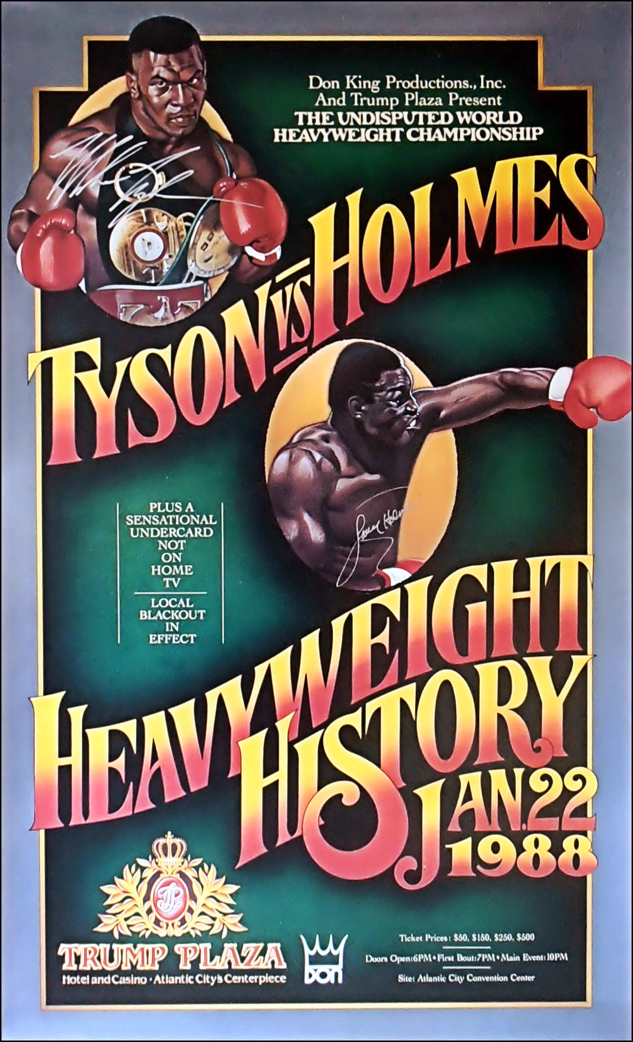 Description : Here we have a mega rare vintage onsite poster billed as "Heavyweight History", for the WBA, WBC and IBF Heavyweight Championships on January 22, 1988.