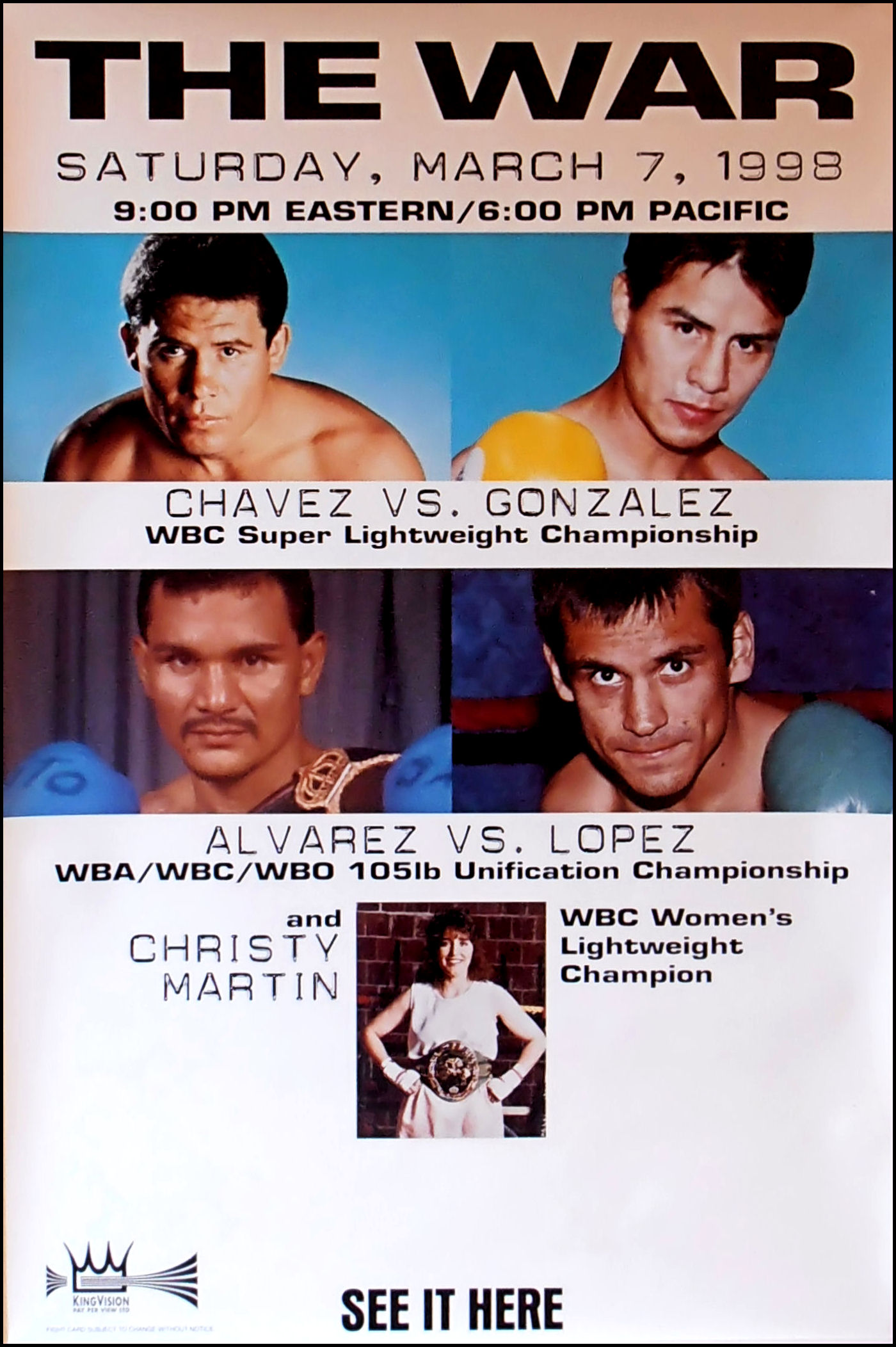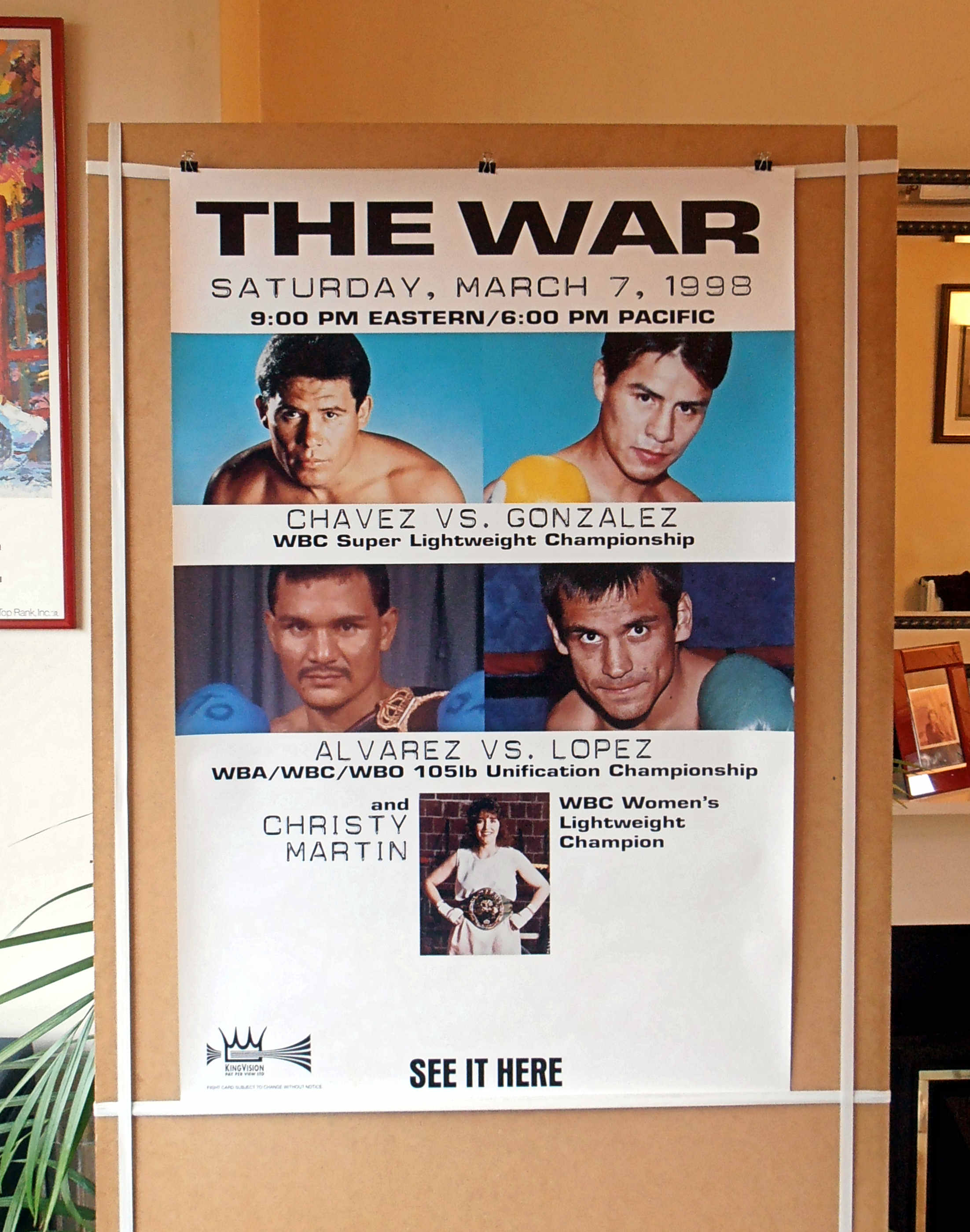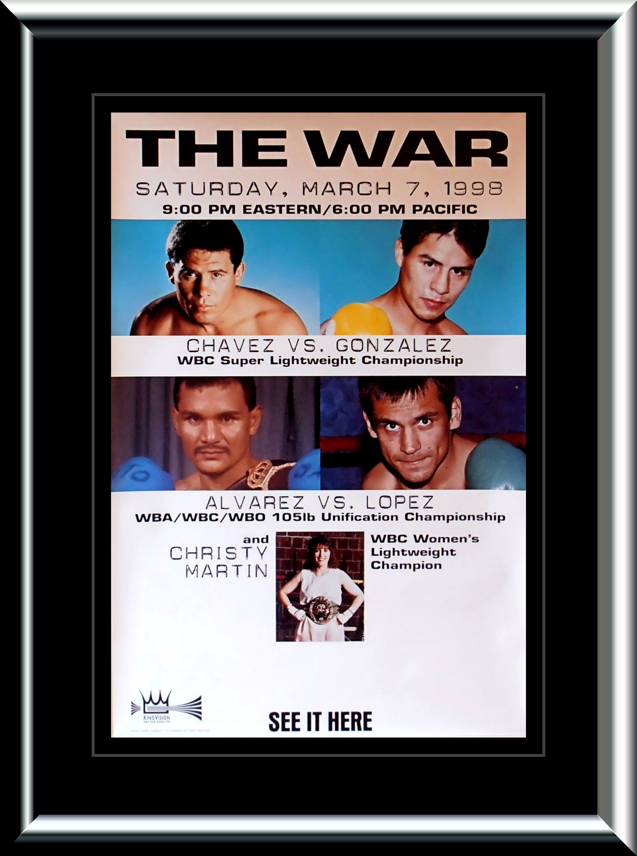 Description : Here we have a super-scarce Kingvision closed circuit poster for the WBC Lt/Welterweight battle from Mexico City.