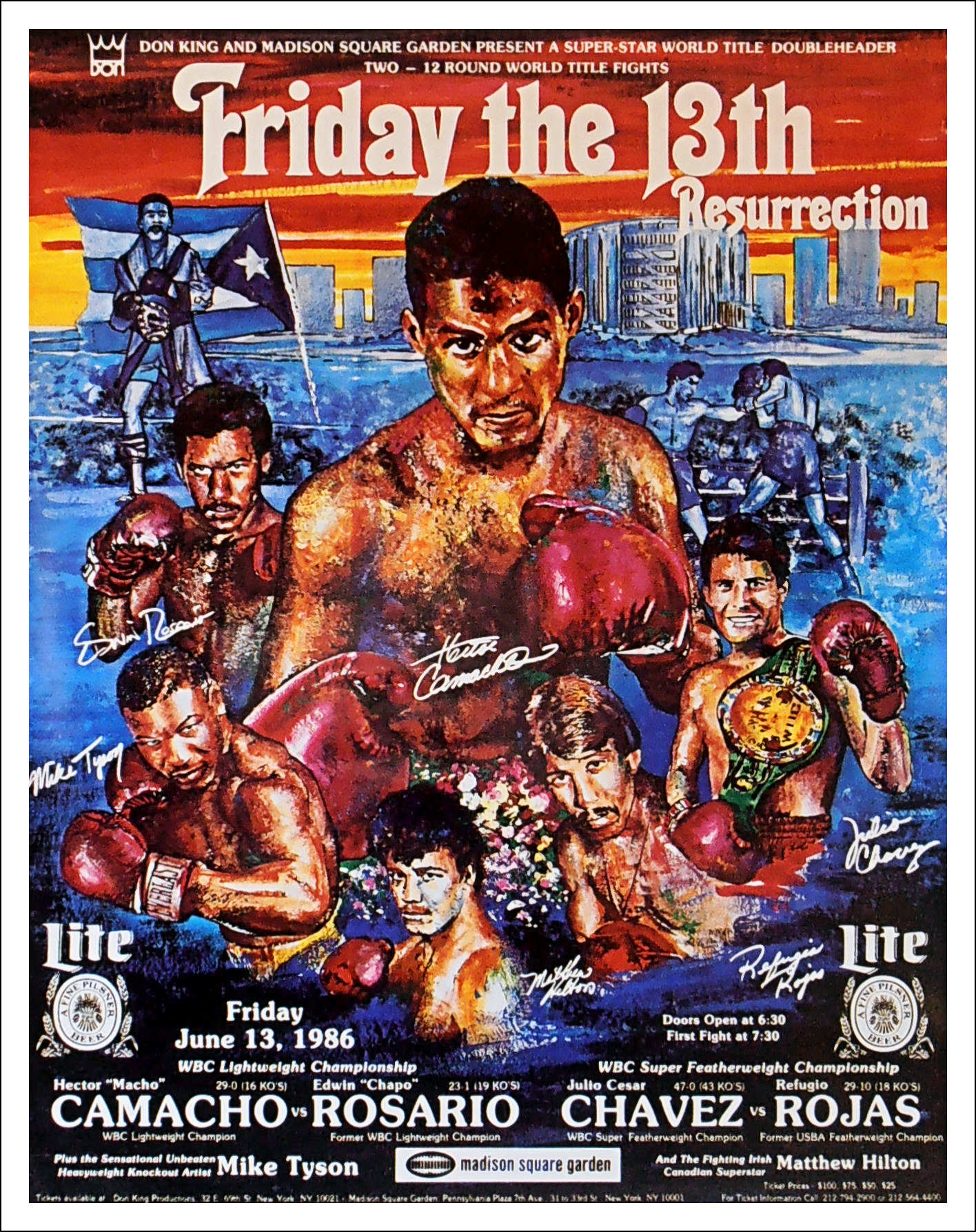 Description : Here we have the mega rare original onsite paper poster from Don King Productions for the mega fight card at Madison Square Garden New York which was head lined by the classic Hector Camacho v Edwin Rosario lightweight title fight showdown.