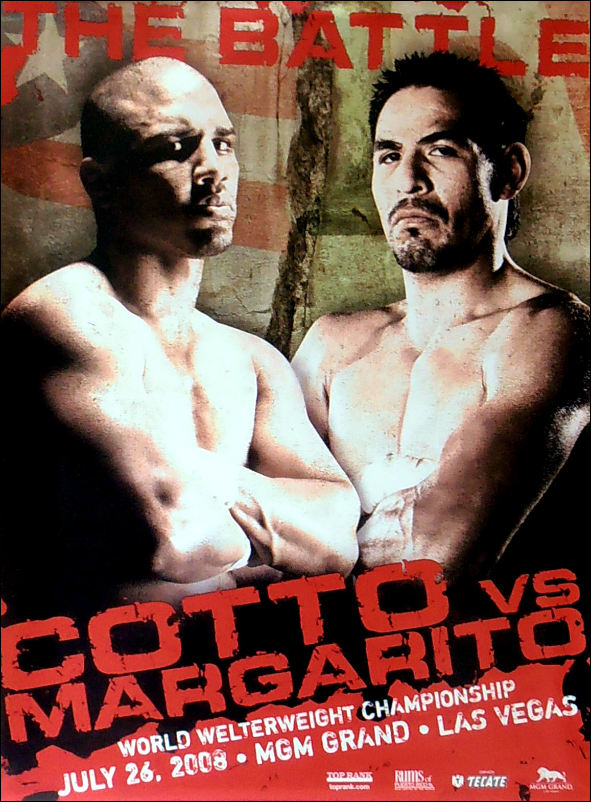 I had the great pleasure to see Antonio Margarito live at the MGM GRAND Las Vegas in July 2008 when he systematically hammered defending champ & superstar Miguel Cotto, beating him into submission in the 11th round. The atmosphere was unreal, Cotto the massive odds on favorite took control of the early rounds with deft foot movement & sharp countering but Margarito was remorseless in hunting down Cotto, eventually enough body punches had the desired effect on Cotto who was now fighting from a static position. This was disastrous for Cotto as he was beaten into the ropes time & again with Margarito swarming all over him & eventually the dam burst & Cotto took a knee, he tried valiantly to compete but by now was a well & truly broken man, after another brutal assault on the ropes, Cotto back tracked across the ring into a corner & submitted to his tormentor by taking another knee & as the referee counted to 10, Cotto's corner threw in the towel to save Cotto from any further punishment & the arena erupted in joyous celebration as the pro Mexican crowd roared there delight. This is definitely one of my best nights ever in Las Vegas, a real pleasure & joy to be part of a great night of world championship boxing.......