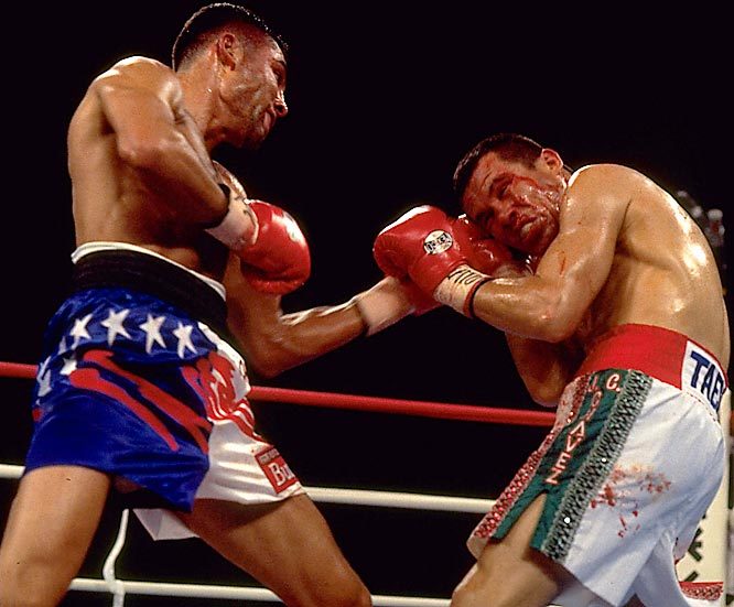 On June 7, 1996, Oscar De La Hoya fought Mexican legend Julio Cesar Chavez (96-1-1) for the Lineal & WBC Light-welterweight championship. De la Hoya, with a record of 21-0 with 19 K.Os, defeated Chavez by a fourth round TKO. The fight was stopped due to a bad cut suffered to Chavez. Until their rematch in 1998, Chavez stated that De La Hoya did not defeat him since the fight was stopped.This was the 1st meeting between the older ageing champion Chavez, and the new kid on the block, the "Olympic Goldenboy" Oscar De La Hoya.