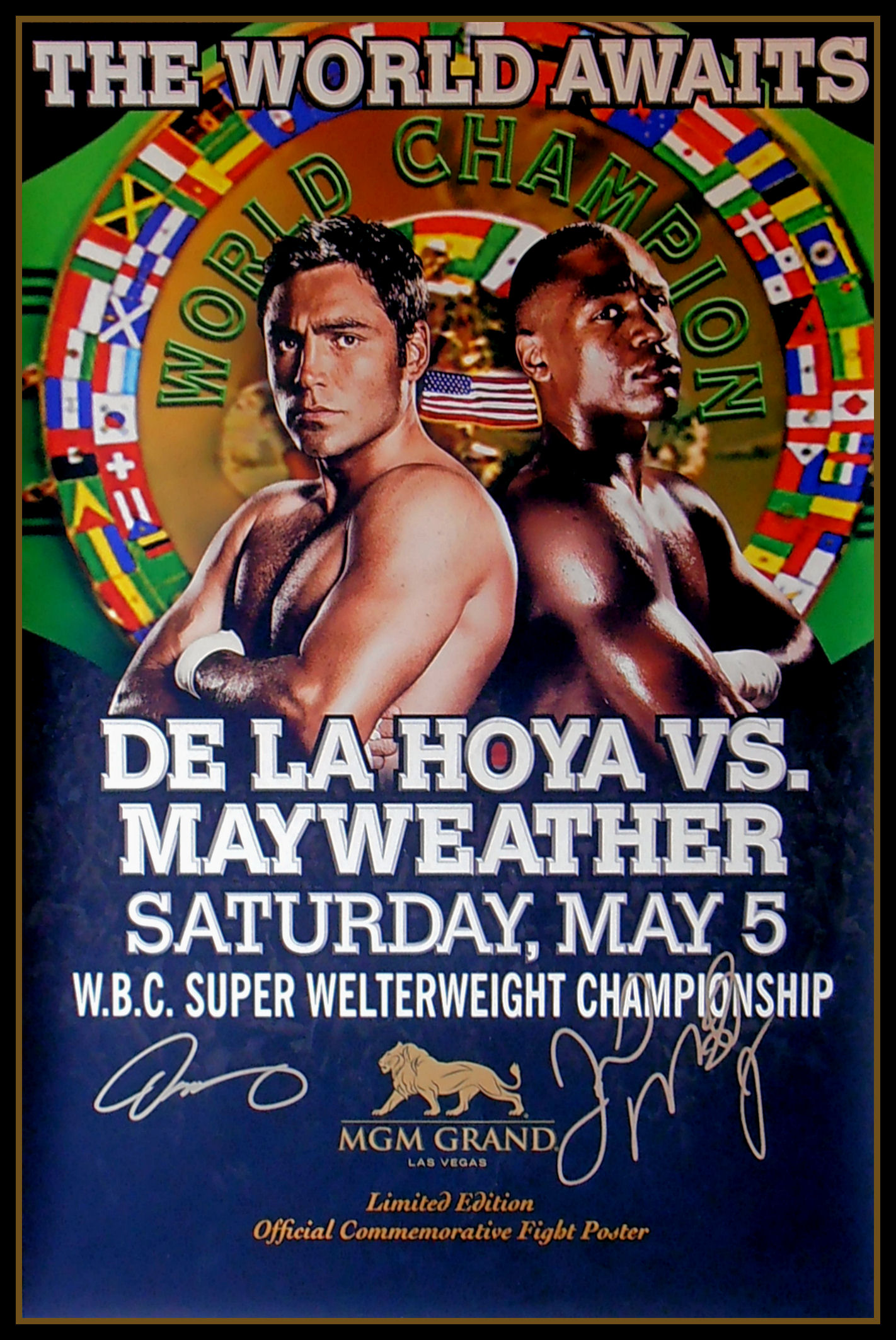 This authentic Oscar De La Hoya & Floyd Mayweather Jr autographed VIP Limited Edition poster from MGM Grand Las Vegas is accompanied with a lifetime guarantee of authenticity from KOfightposters.