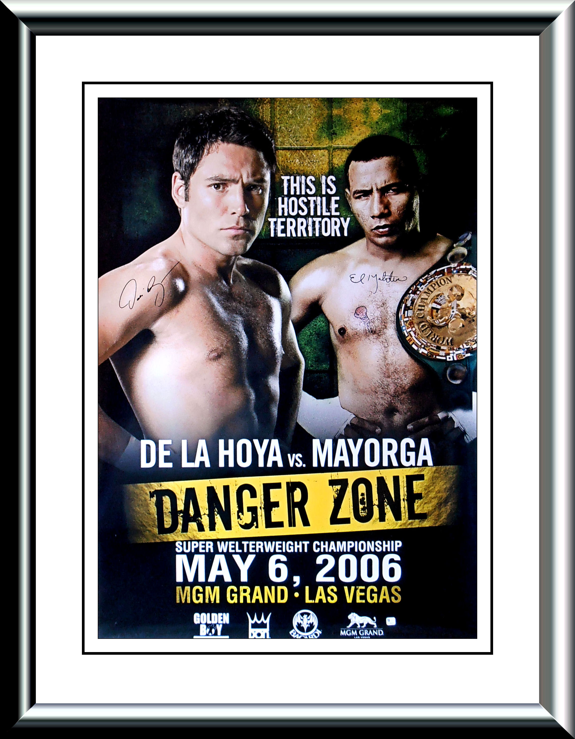 Description : Here we have an official main event onsite poster from the MGM Grand Las Vegas for the Oscar De La Hoya v Ricardo Mayorga WBC Light/Middleweight showdown...This poster has been signed by Oscar De La Hoya & Ricardo Mayorga.