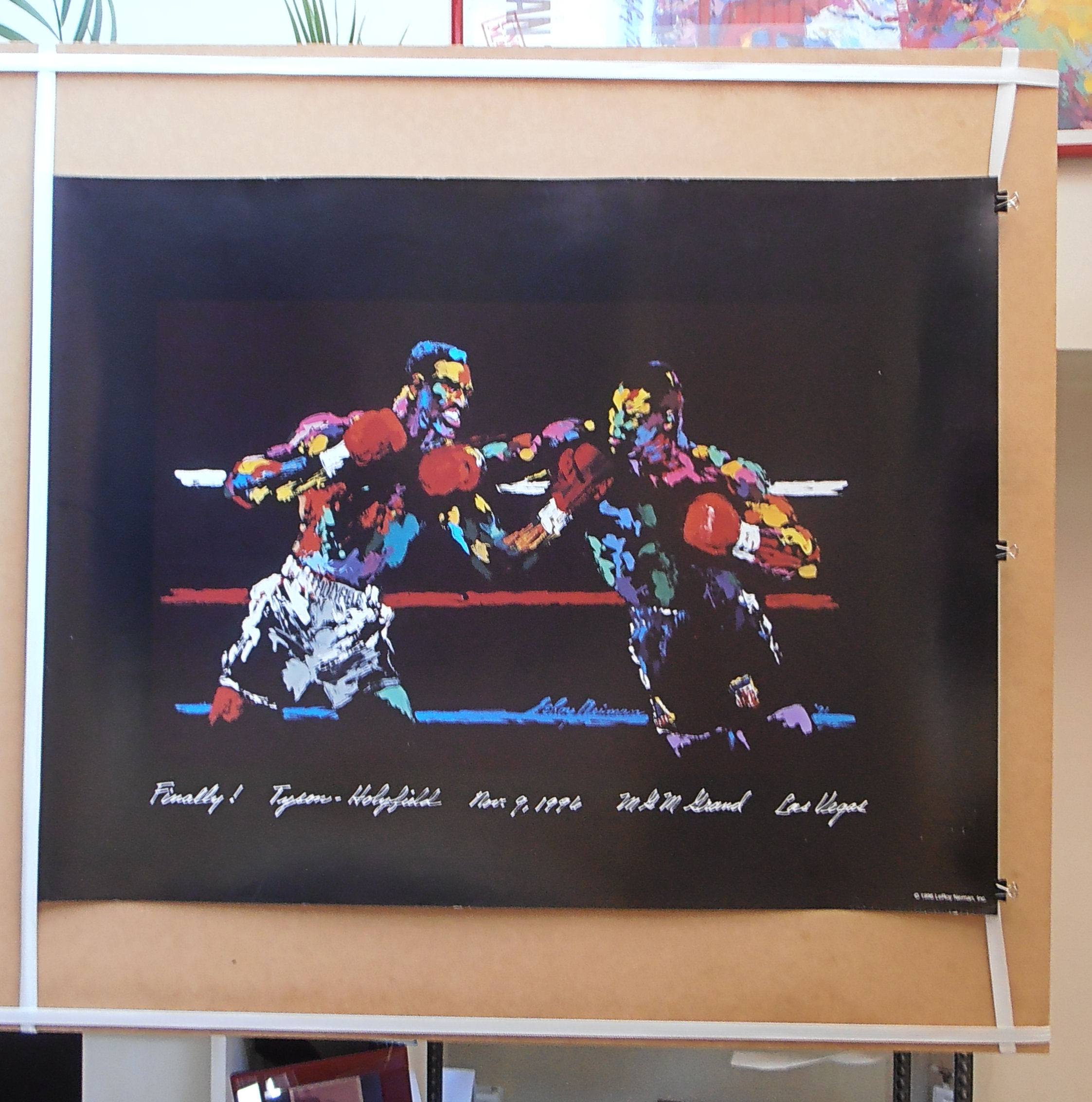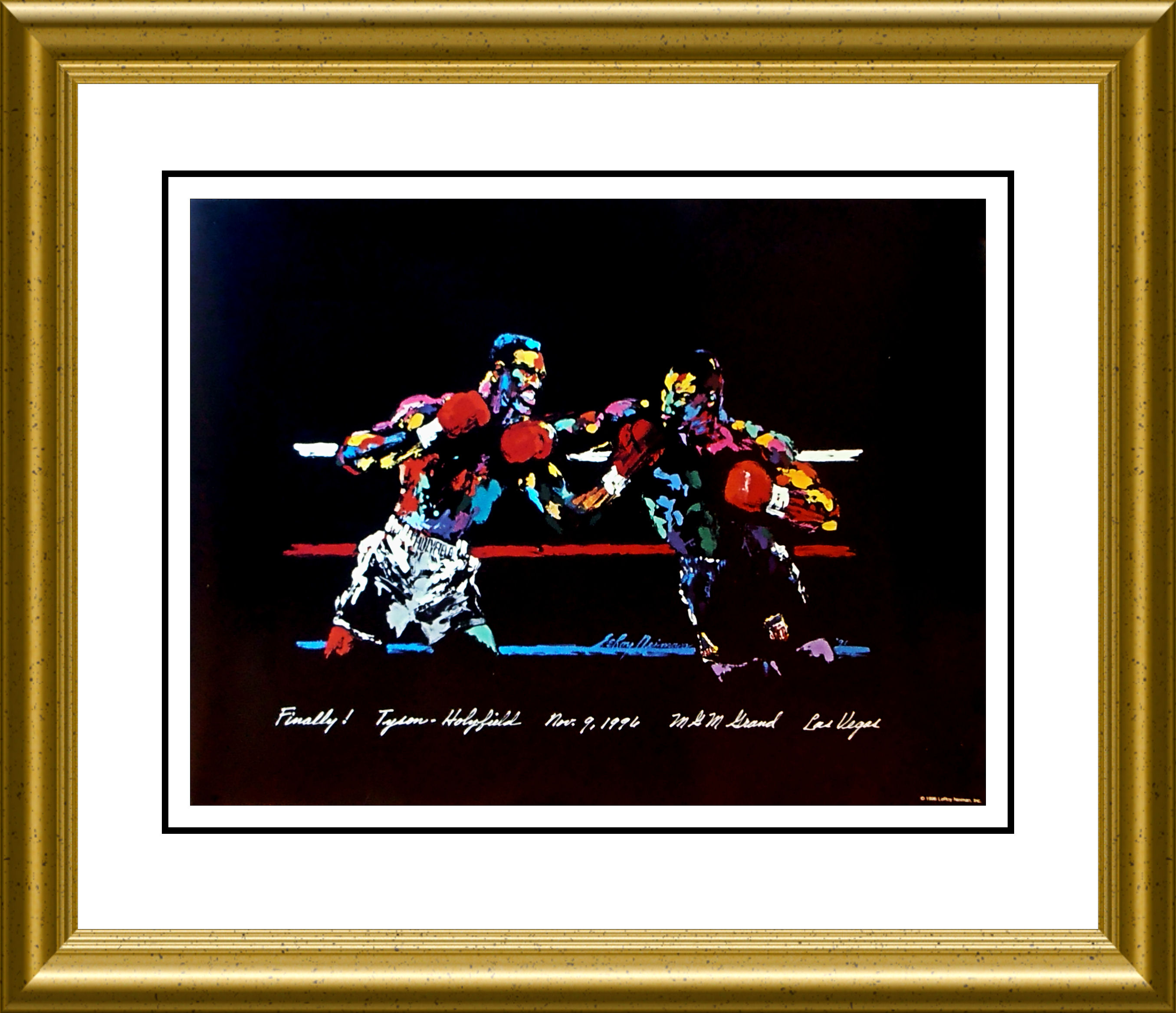 Description : Here we have a fantastic super rare onsite poster from the late great world famous sports artist, Leroy Neiman who had the original commission from Caesars Palace back in 91 to produce an art work for the original fight date that was cancelled due to Tyson injury & then Tyson's subsequent imprisonment. This fantastic piece of art was resurrected for the long awaited battle between Tyson & Holyfield in November 96 for the WBA Heavyweight Title, which Don King gave the handle of 'FINALLY'
