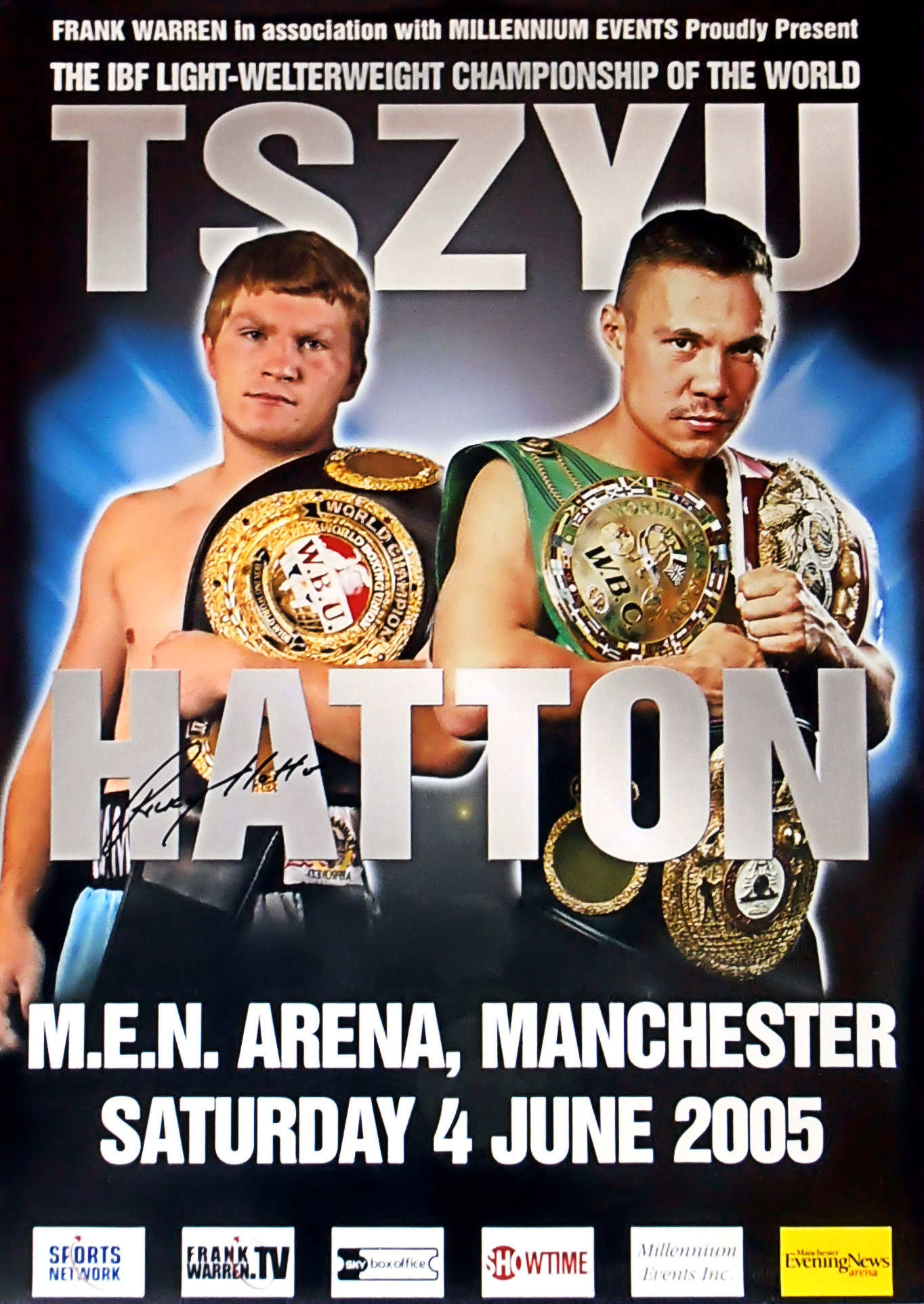 Description : Here we have the official Frank Warren promotions poster from that most historic night when Ricky "Hitman" Hatton won the IBF Light Welterweight Title when he defeated the great Kostya Tszyu. This poster has been signed by Ricky Hatton.