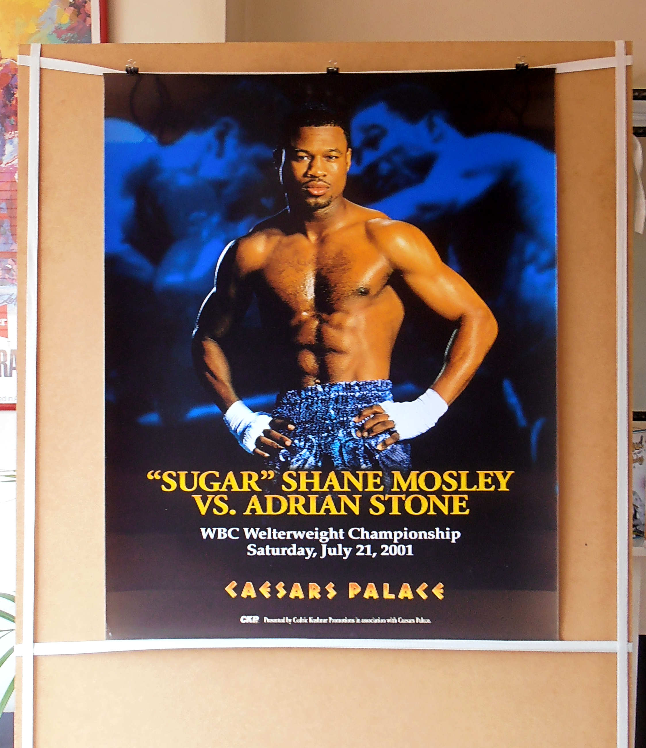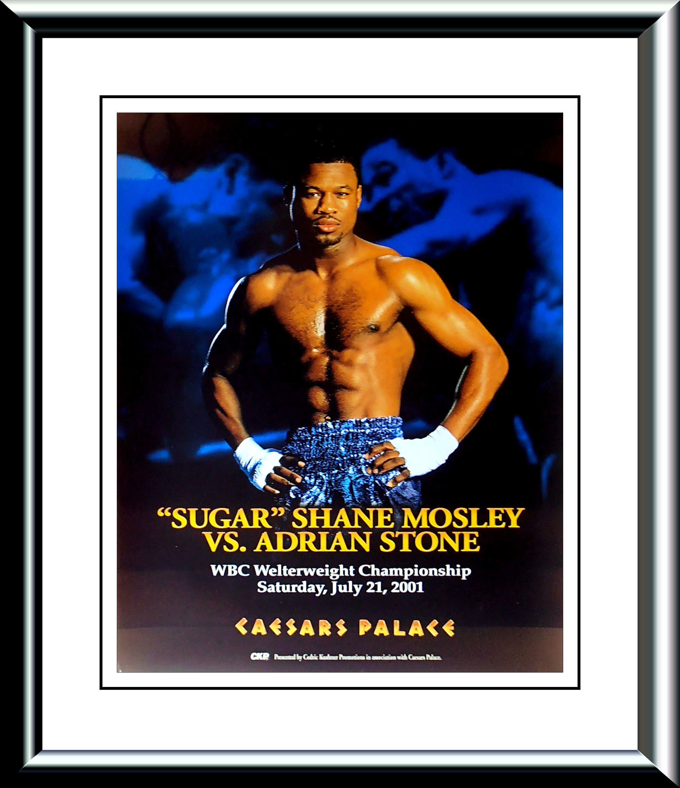 Description : Here we have an original onsite poster from Caesars Palace for the WBC World Welterweight Championship between reigning & defending champion Sugar Shane Mosley & challenger Adrian Stone.