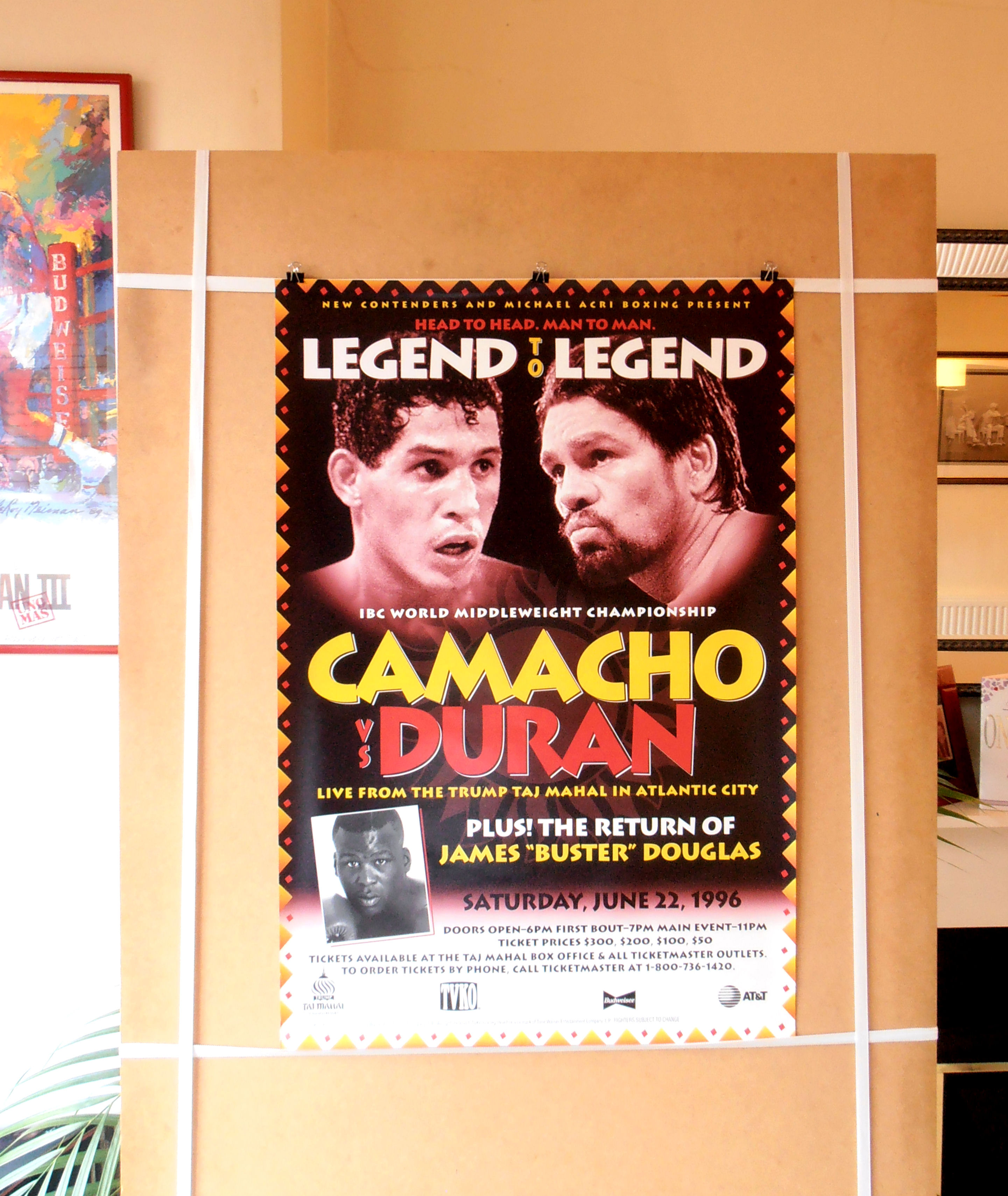 Description : Here we have an original official onsite boxing main event fight poster for the IBC world middleweight championship title bout held at the Mark Etess Arena, Atlantic City, New Jersey, USA, 22nd June 1996.