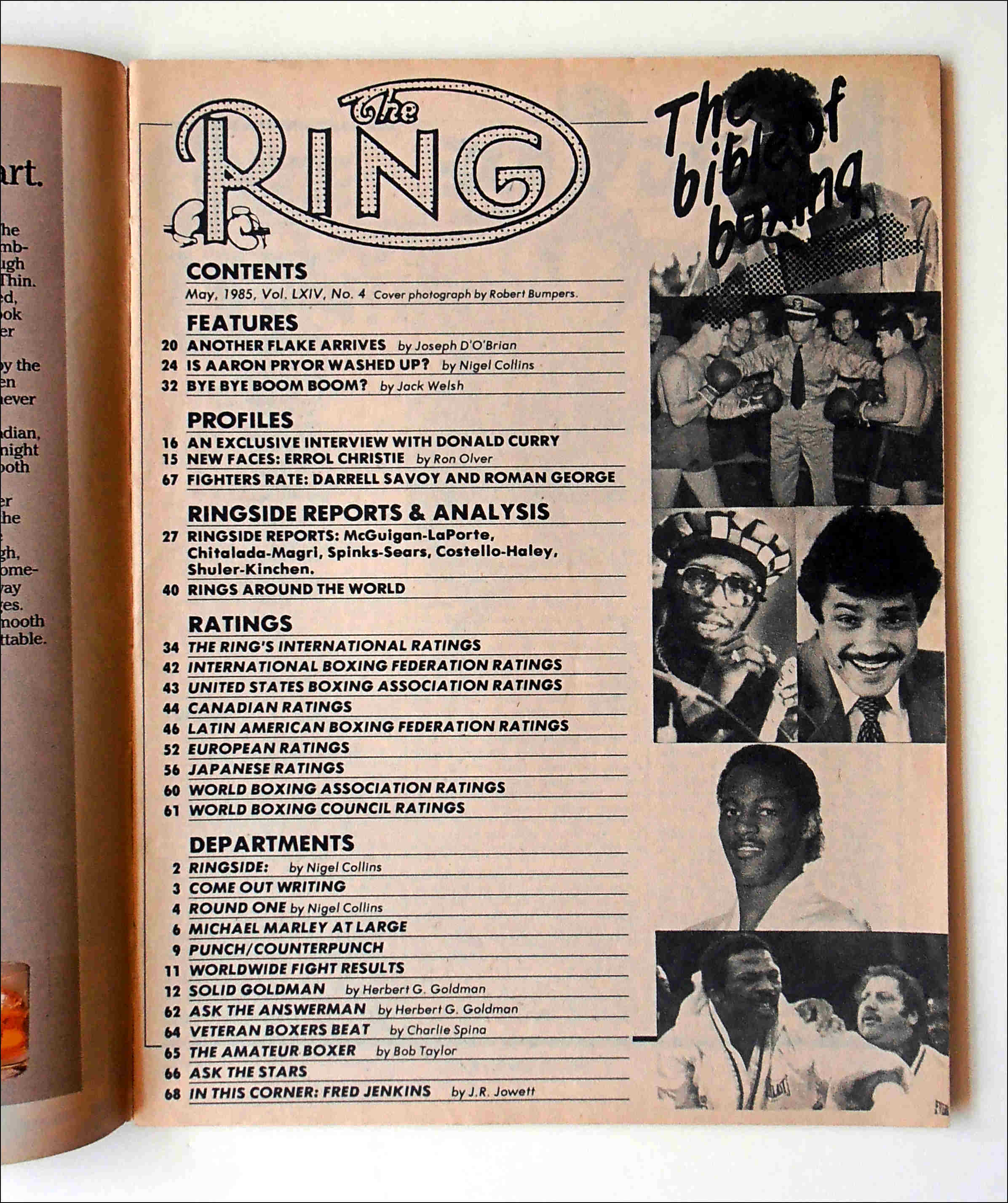 Description : Here we have a vintage RING monthly magazine, fabulous production from yester-year, a great source of information, packed with stats/facts, to use on modern day boxing forums when slapping down some know-all chancer. What just seems like yesterday, the 80's were packed with action & drama from a time when there was only 2 governing bodies, WBC/WBA & no one ducked anyone. Fabulous read & images of past titans who are today's grandfathers, see them in there youth & pomp, never forget, there where once a warrior!