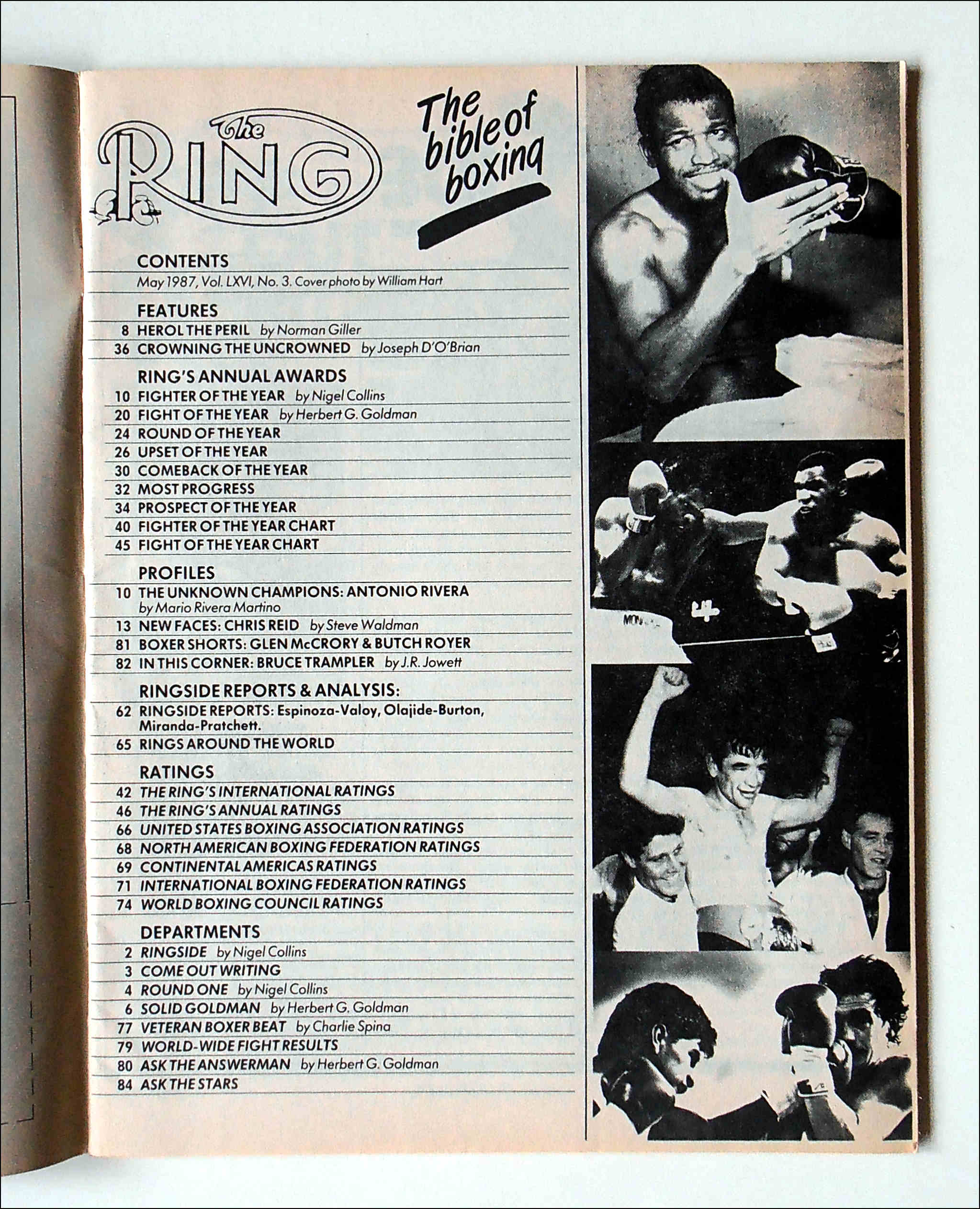 Description : Here we have a vintage RING monthly magazine, fabulous production from yester-year, a great source of information, packed with stats/facts, to use on modern day boxing forums when slapping down some know-all chancer. What just seems like yesterday, the 80's were packed with action & drama from a time when there was only 2 governing bodies, WBC/WBA & no one ducked anyone. Fabulous read & images of past titans who are today's grandfathers, see them in there youth & pomp, never forget, there where once a warrior!