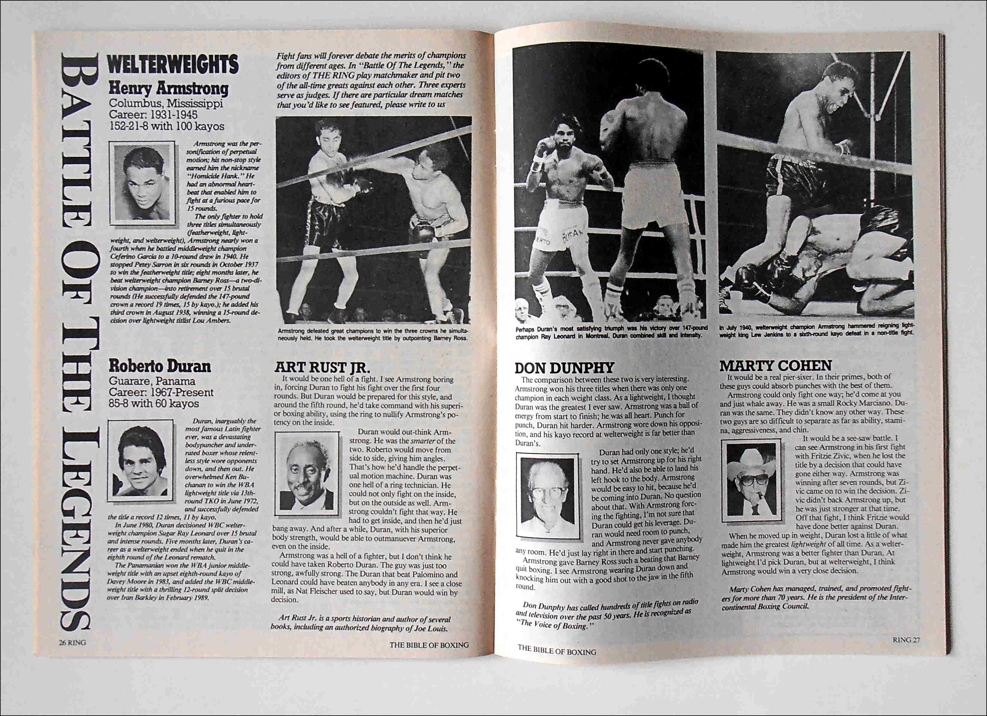 Description : Here we have a vintage RING monthly magazine, fabulous production from yester-year, a great source of information, packed with stats/facts, to use on modern day boxing forums when slapping down some know-all chancer. What just seems like yesterday, the 80's were packed with action & drama from a time when there was only 2 governing bodies, WBC/WBA & no one ducked anyone. Fabulous read & images of past titans who are today's grandfathers, see them in there youth & pomp, never forget, there where once a warrior!