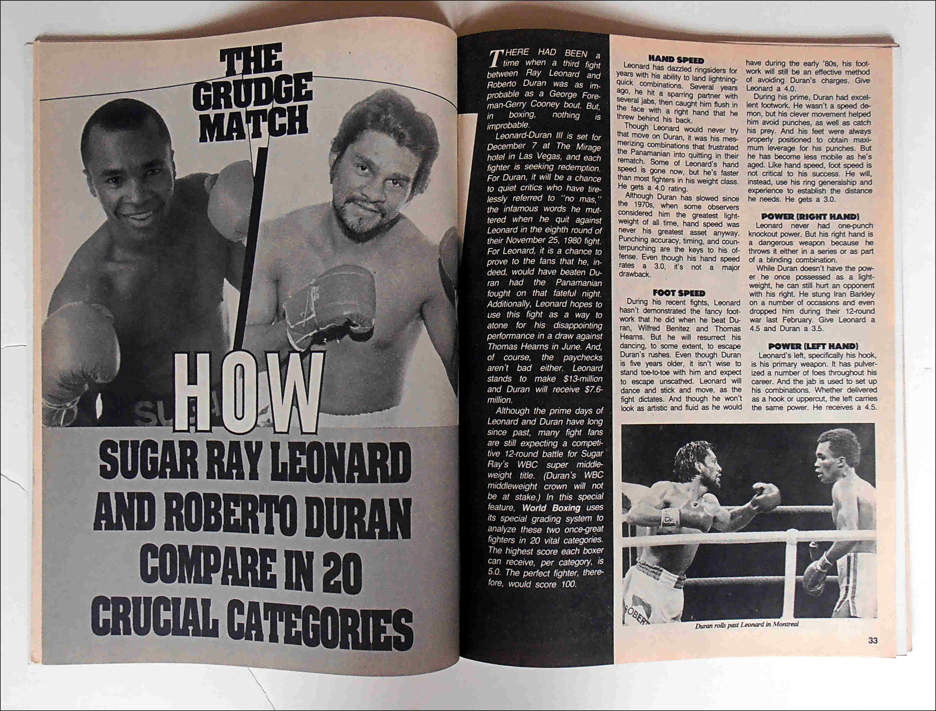 Description : Here we have a vintage 'WORLD Boxing' monthly magazine, fabulous production from yester-year,this was one of my favorite publication's, superb layout! A great source of information, packed with stats/facts, to use on modern day boxing forums when slapping down some know-all chancer. What just seems like yesterday, the 80's were packed with action & drama from a time when there was only 2 governing bodies, WBC/WBA & no one ducked anyone. Fabulous read & images of past titans who are today's grandfathers, see them in there youth & pomp, never forget, there where once a warrior!