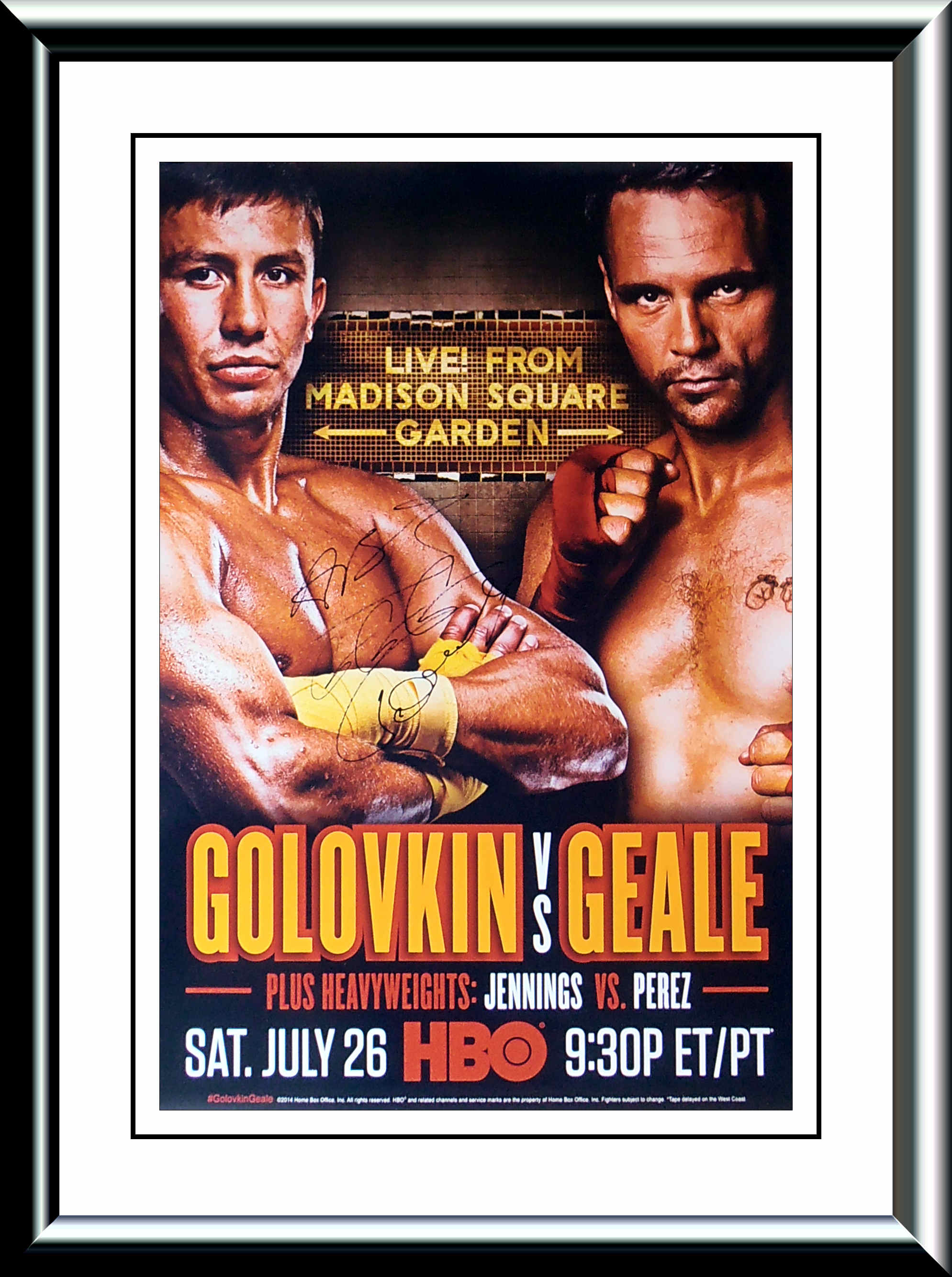 This authentic Gennady Golovkin autographed HBO boxing pay per view poster comes with a letter of guarantee of authenticity from KOfightposters.com for a lifetime & beyond.