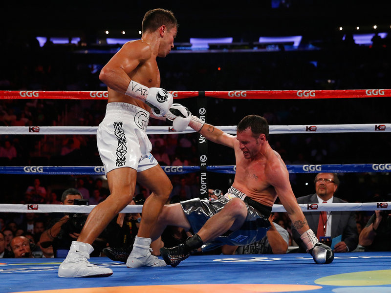 Golovkin retained his middleweight world title for the 11th time as he blew away former middleweight titleholder Geale in the third round for an explosive ending to yet another dominant performance. Geale was supposed to represent the stiffest test of Golovkin's career but proved no test at all. Golovkin (30-0, 27 KOs) dropped Geale (30-3, 16 KOs) in the second round and then dusted him in the third with a right hand. Geale made it to his feet, but he was all over the place on unsteady legs, and referee Michael Ortega stopped the fight at 2 minutes, 43 seconds. Golovkin scored his 17th knockout in a row and has not had to go the distance since winning an eight-round decision in 2008.