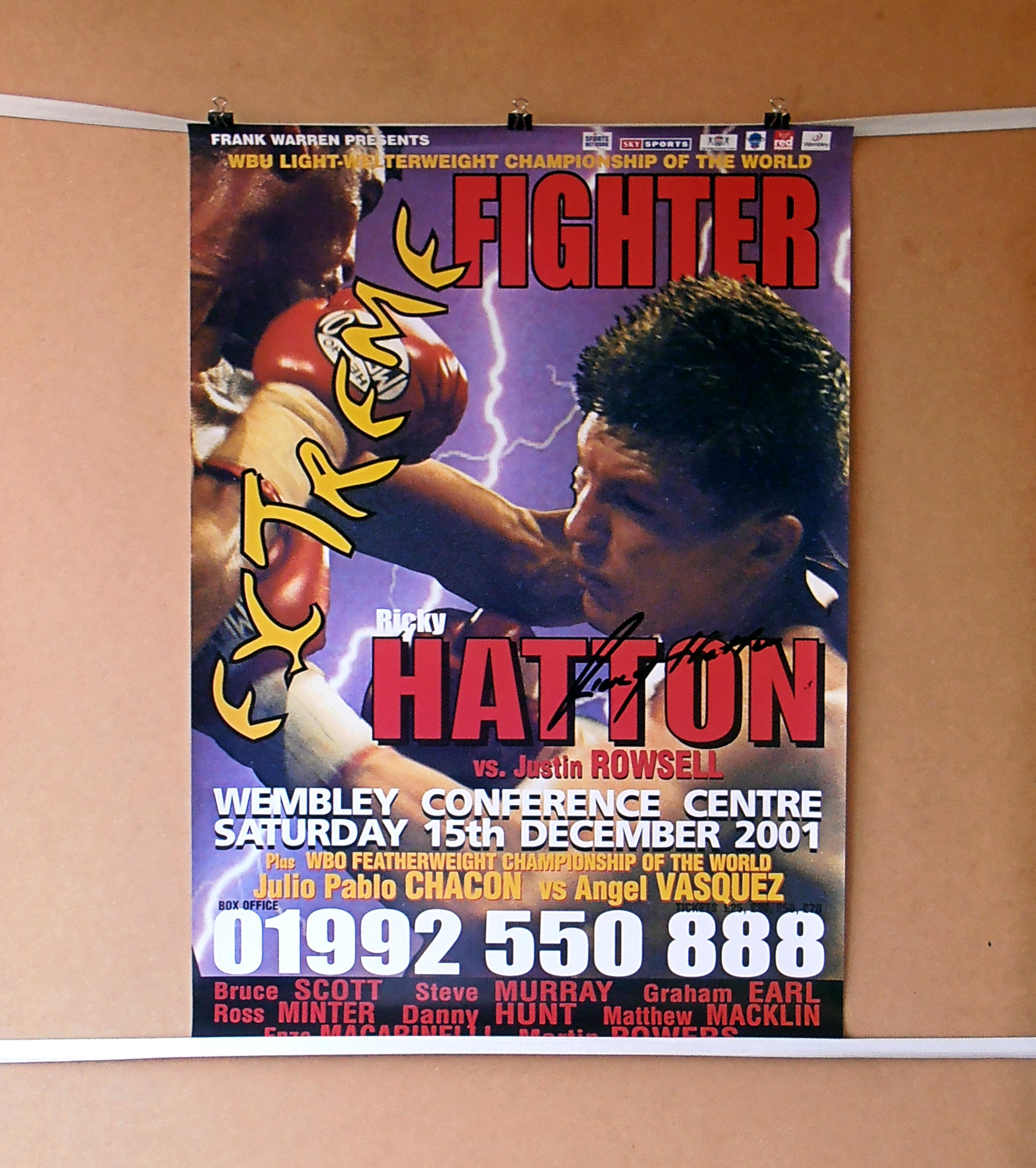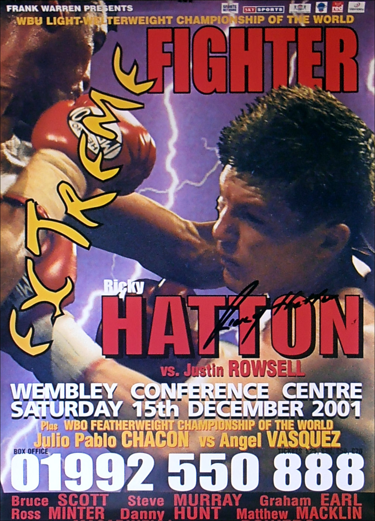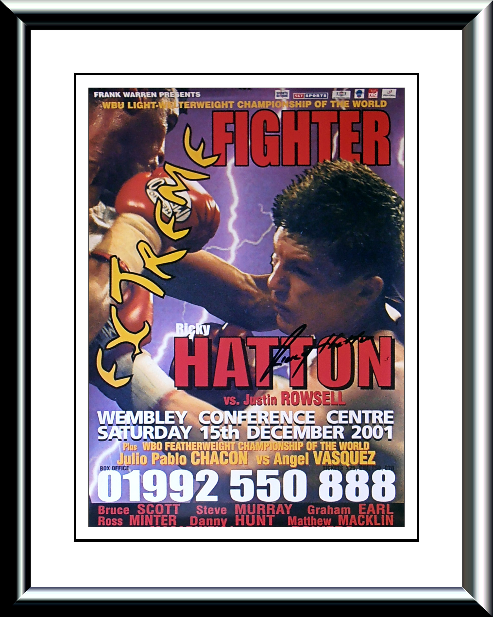 This Ricky Hatton autographed Frank Warren promotions poster comes with a letter of guarantee of authenticity from KOfightposters.com for a lifetime & beyond.