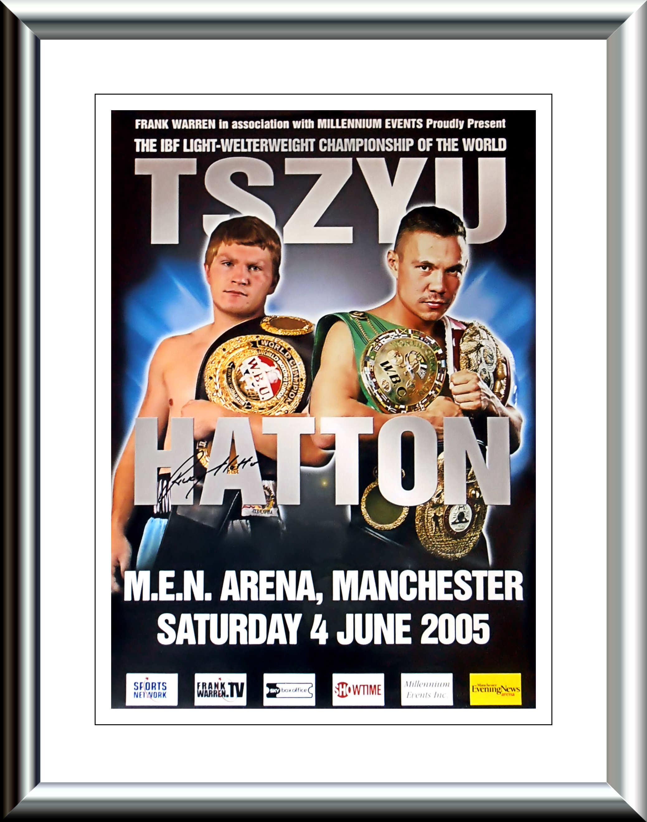 Description : Here we have the official Frank Warren promotions poster from that most historic night when Ricky "Hitman" Hatton won the IBF Light Welterweight Title when he defeated the great Kostya Tszyu. This poster has been signed by Ricky Hatton.