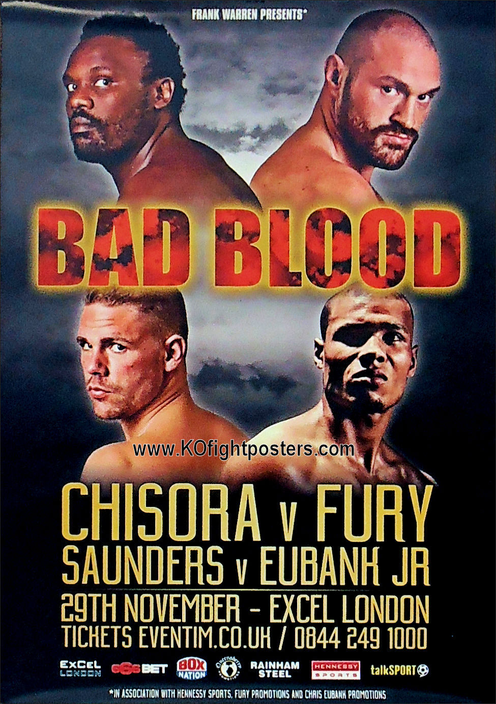 Description : Here we have the Frank Warren/Boxnation official promotional poster from the 29th November dual header at the Excel Arena Docklands, London. Tyson Fury won the British and European heavyweight titles with a 10th-round retirement of Dereck Chisora at London's Excel arena.
