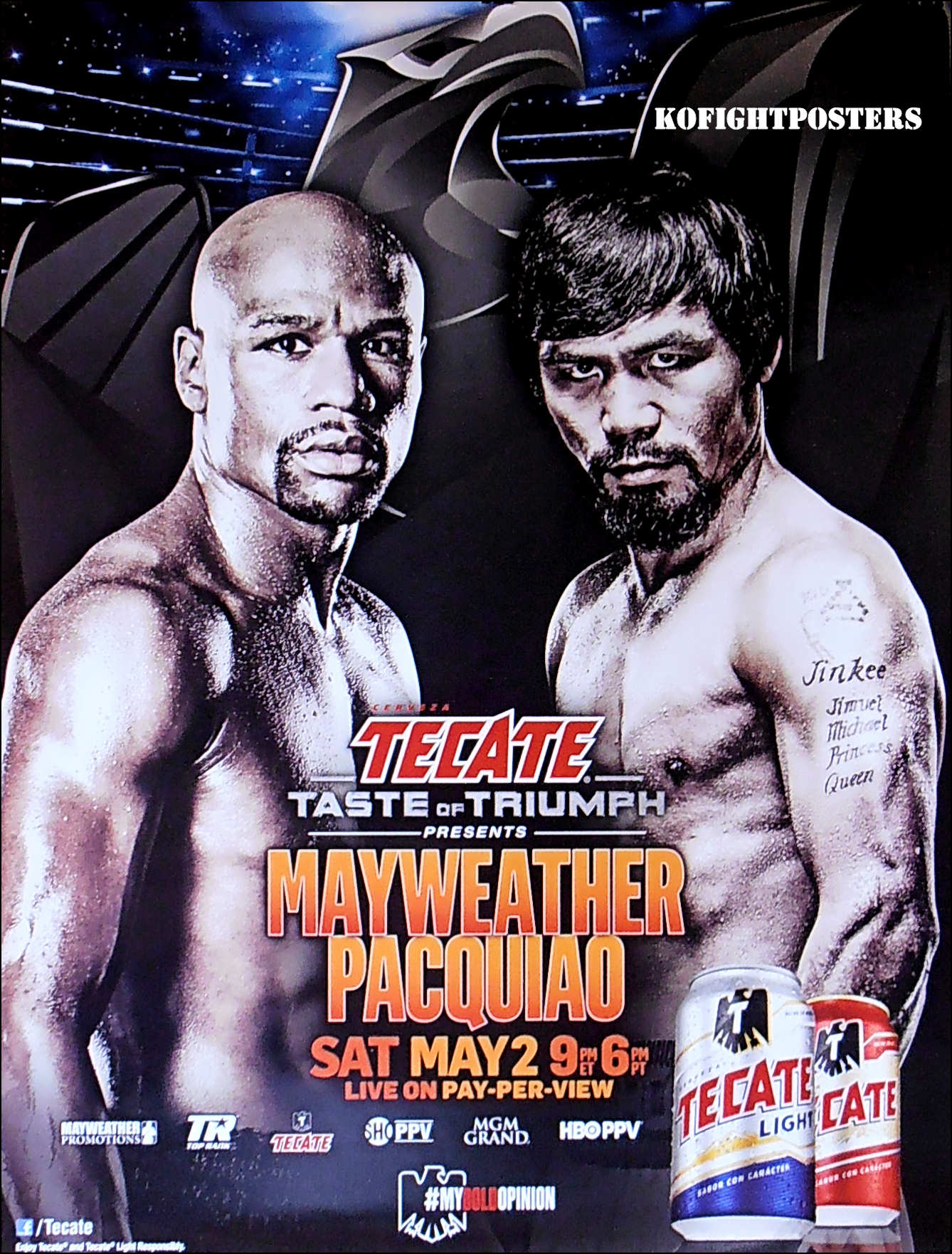 Description : Here we have the MGM Grand Las Vegas official fight sponsors poster from TECATE for the SuperFight that we've all been waiting for these past 5 years, the long awaited showdown between the eight-division world champion Manny Pacquiao and undefeated, five-division world champion Floyd Mayweather, Jr. The fight took place on May 2, 2015 at the MGM Grand Garden Arena in Las Vegas, Nevada.