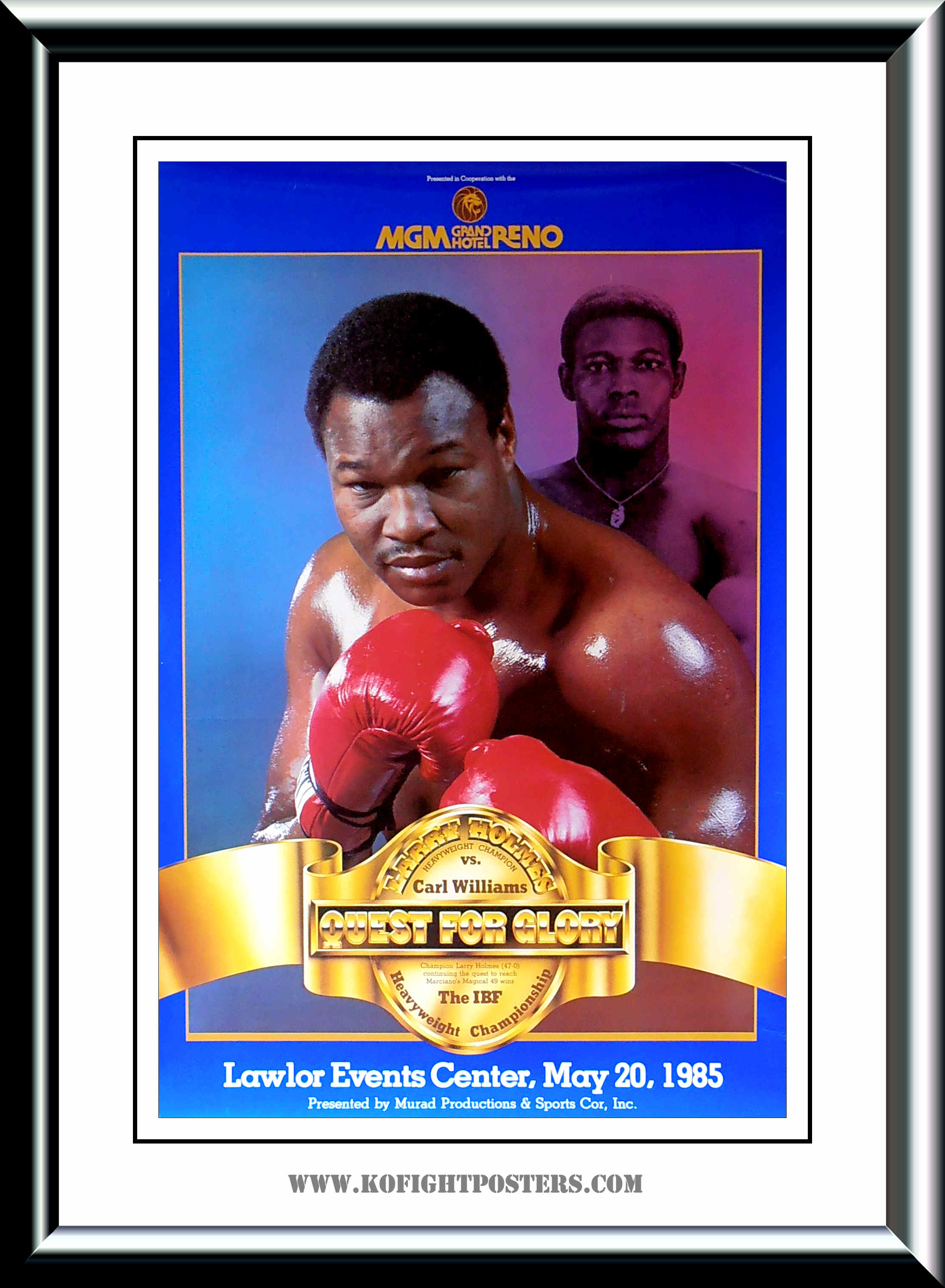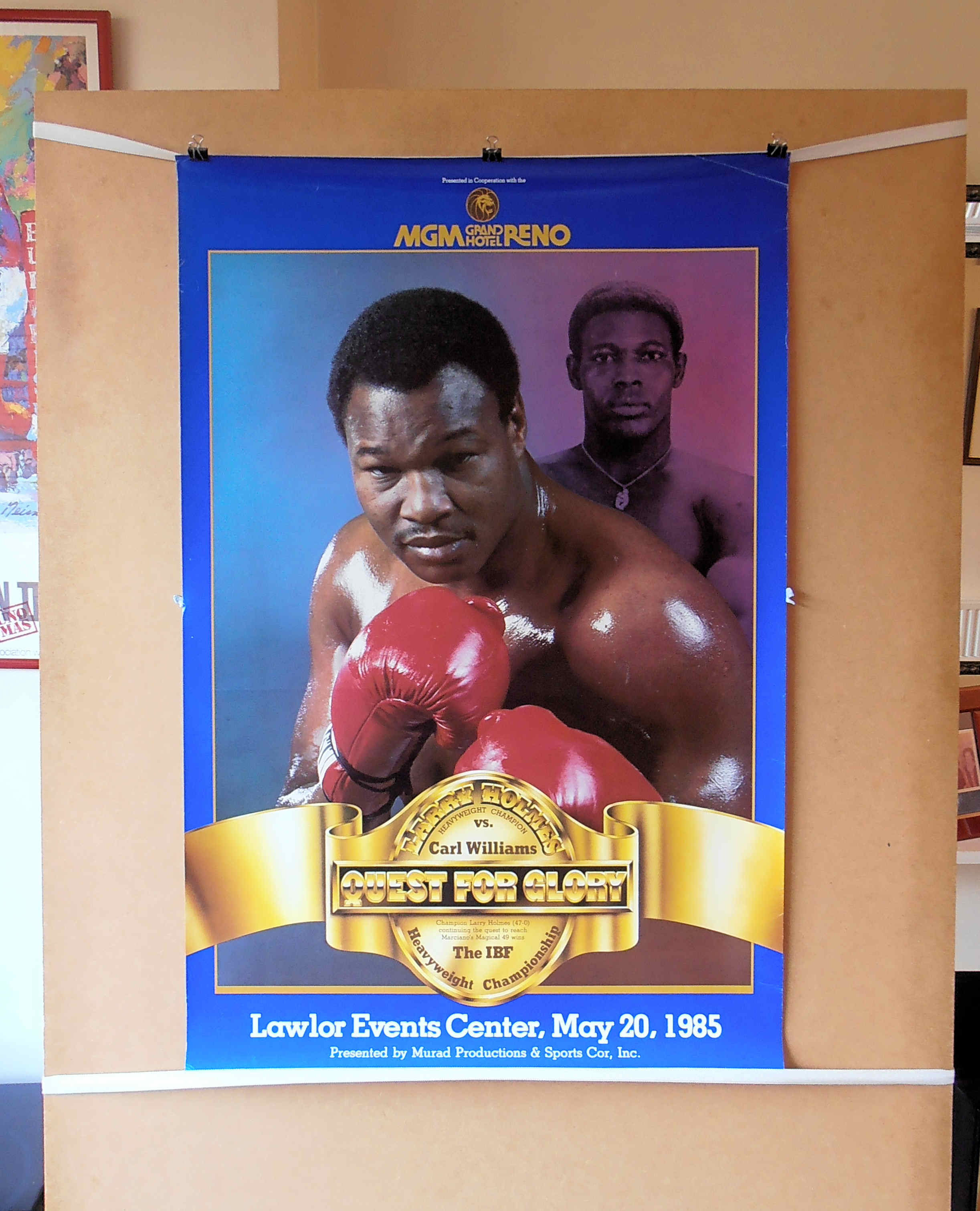 Description : Here we have a super rare vintage onsite poster from 20th May 1985 from the Lawlor Events Center, Reno, Nevada USA, for the WBC heavyweight title defence between reigning & defending champion Larry Holmes pitted against contender Carl "The Truth" Williams, it was Holmes 3rd defence of his IBF crown.