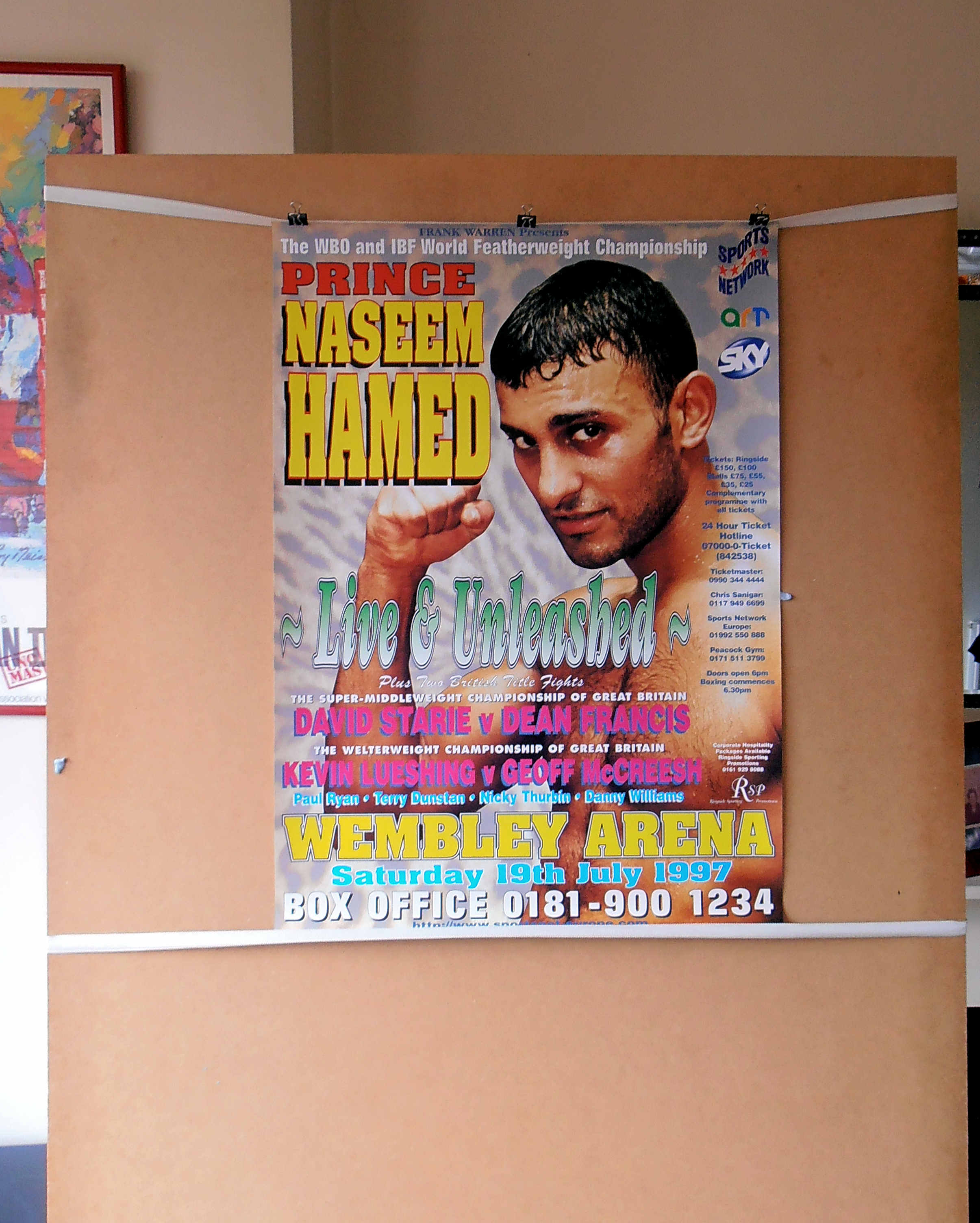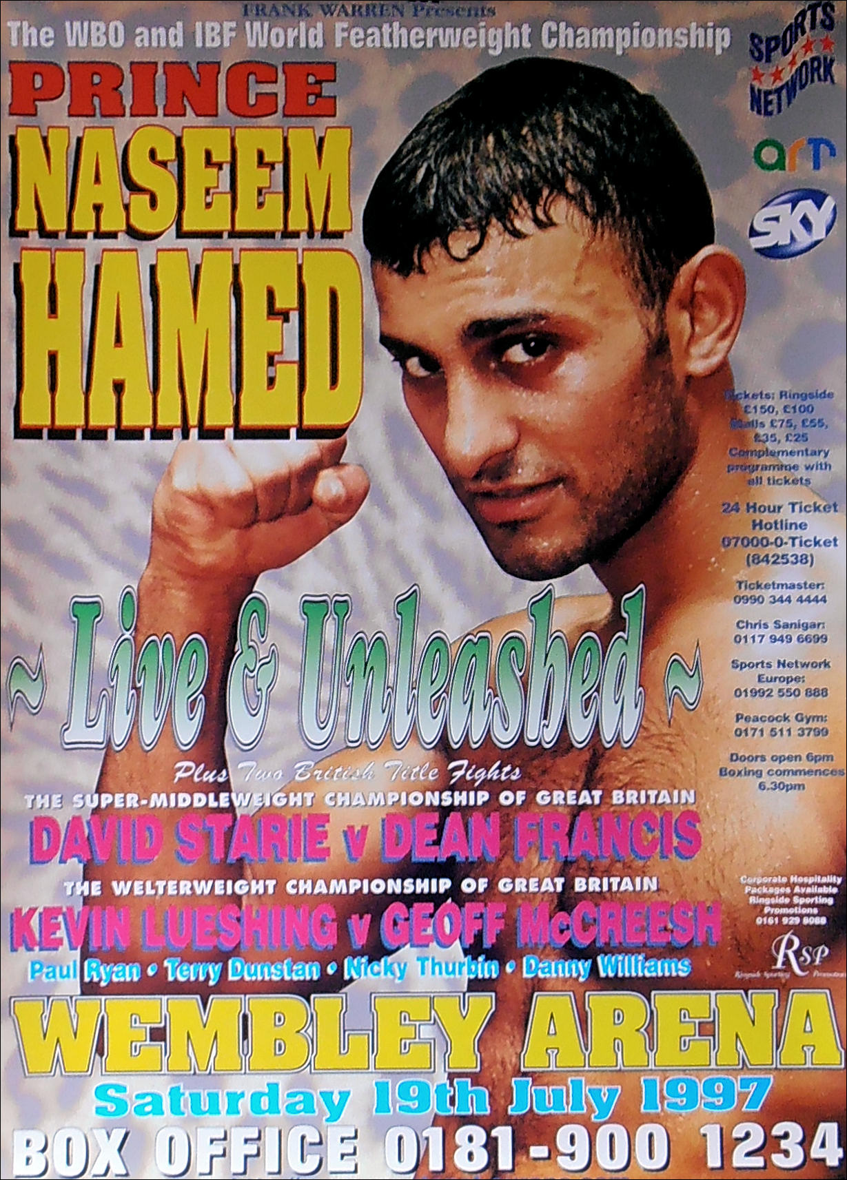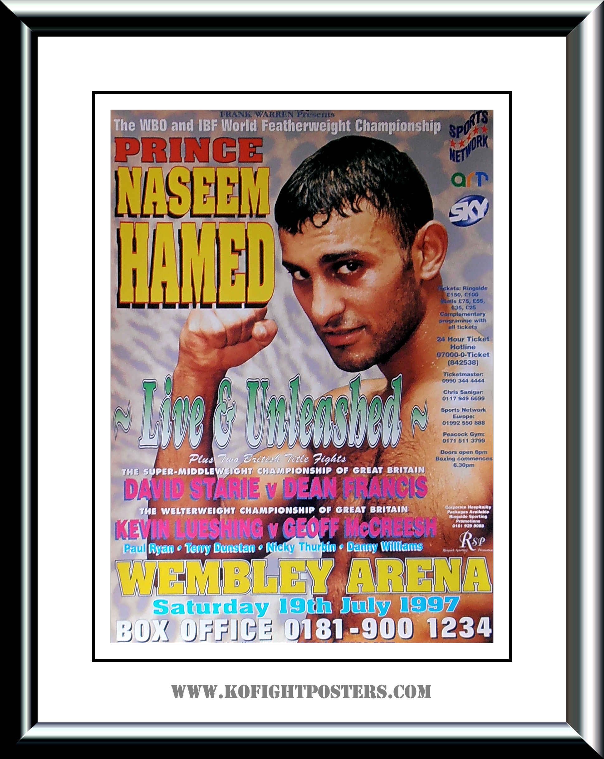 Description : Here we have an original frank warren promotions poster for the WBO featherweight title bout held at the Wembly Arena, London, England on 19th July 1997.