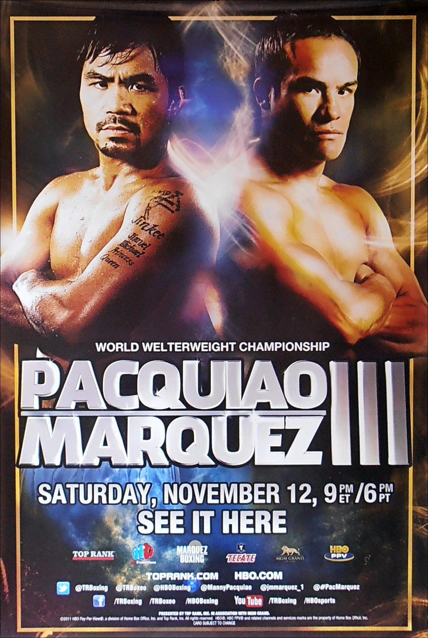 Description : Here we have an official full-size HBO Boxing Closed Circuit poster for the 3rd showdown at the MGM Grand Las Vegas for the WBO Welterweight Title