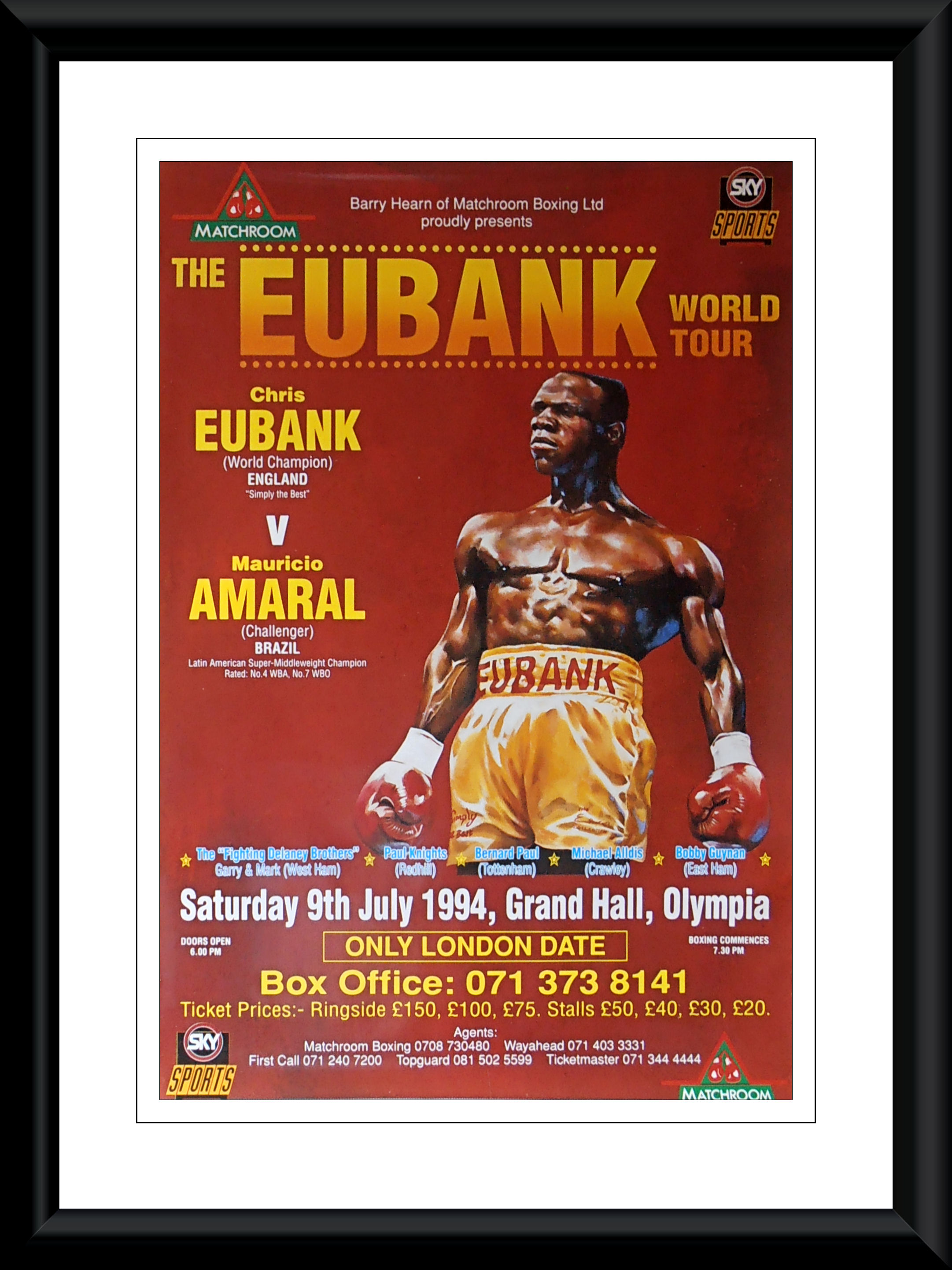 Description : Here we have an original official super-scarce Matchroom promotions onsite promotional boxing poster for the WBO world super-middleweight world title bout held at the Earls Court Exhibition Hall, Kensington, London, United Kingdom, 9th July 1994.