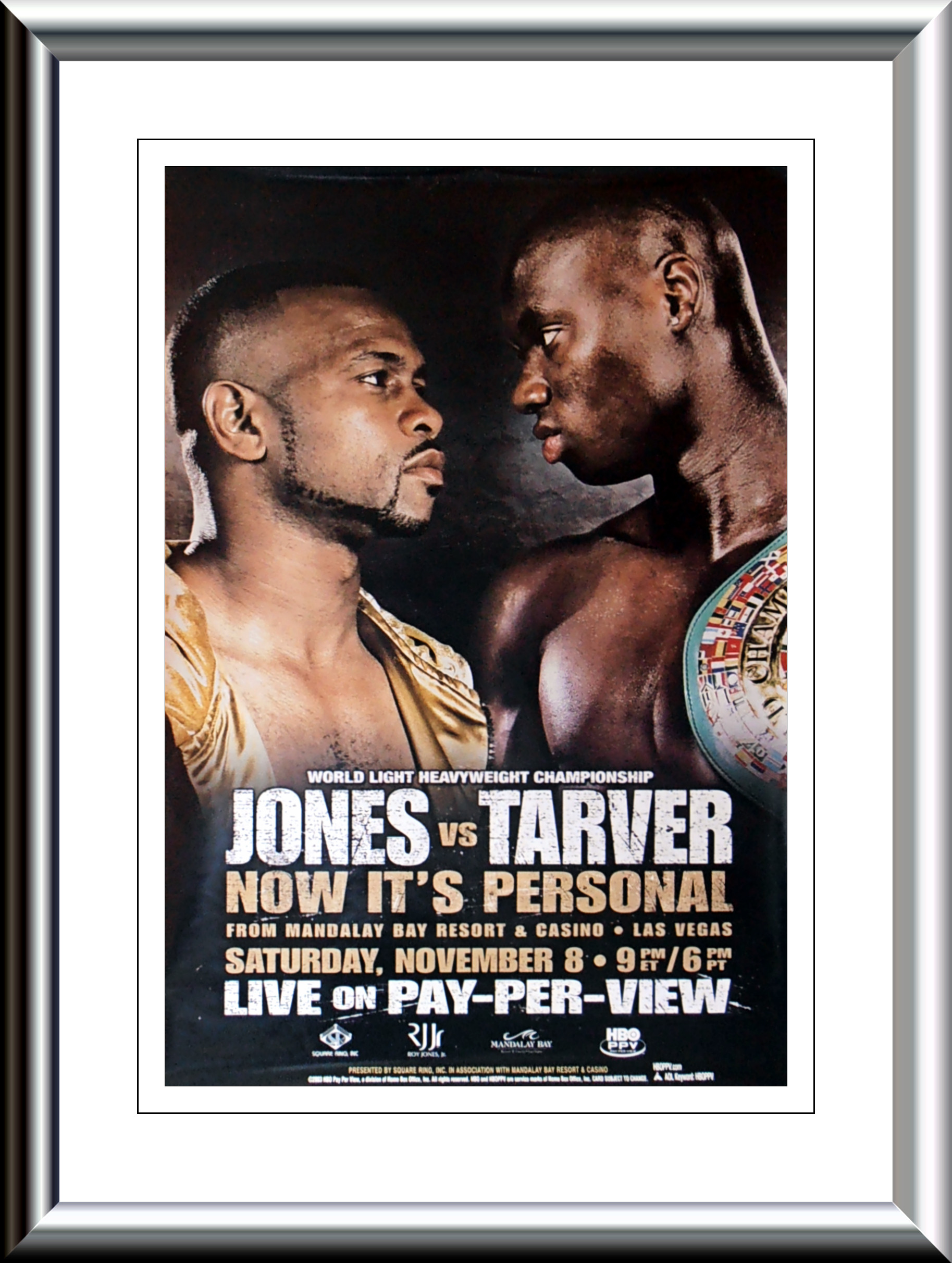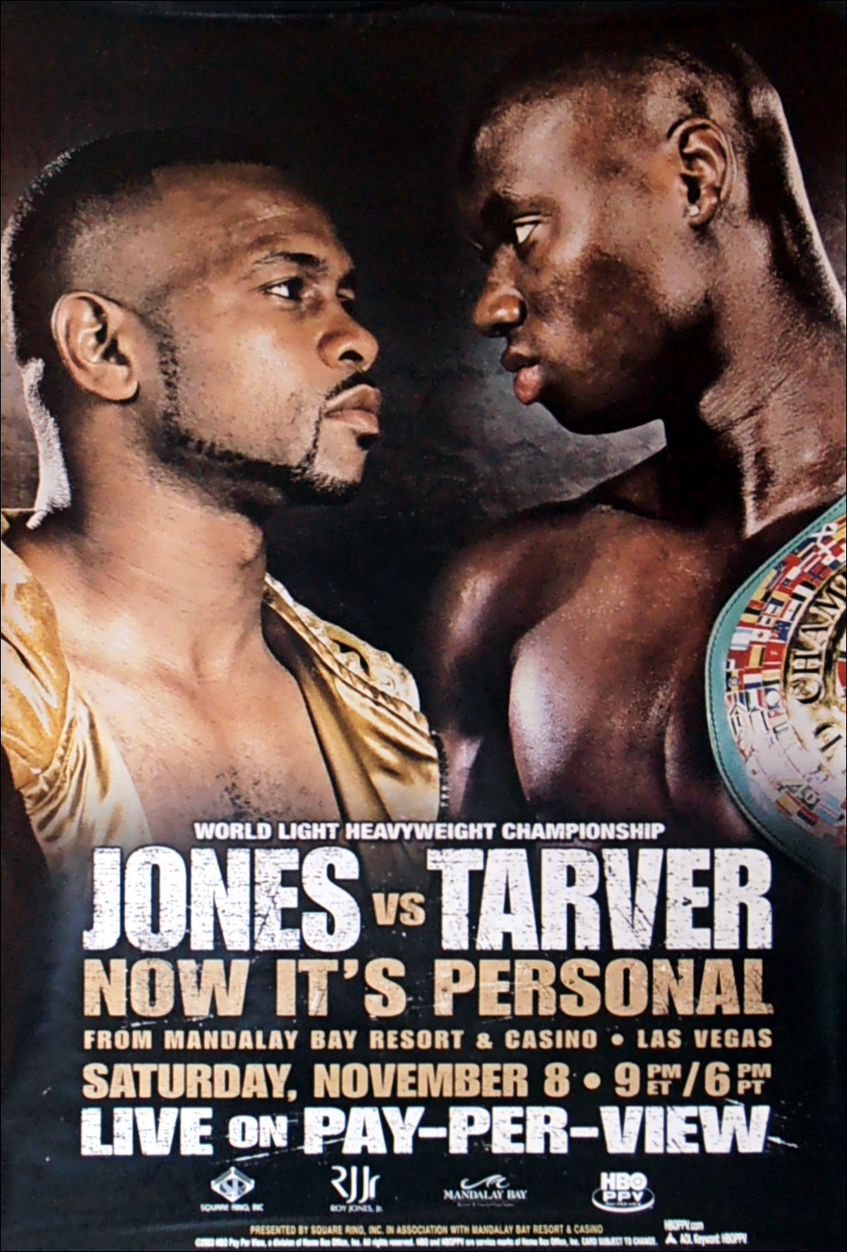 Description : Here we have an original full-size HBO boxing pay-per-view fight poster for the WBC world light-heavyweight championship title bout held at the Mandalay Bay Resort & Casino, Las Vegas, Nevada, USA, 8th November 2003.