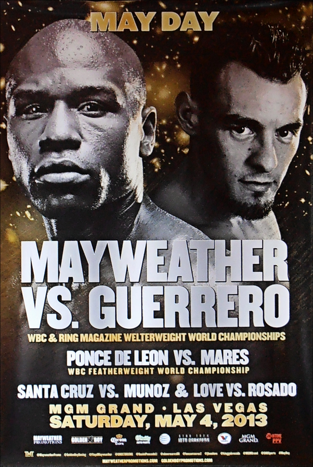 Description : Here we have an original official MGM Grand onsite main event fight poster for the WBC world welterweight championship title bout held at the MGM Grand Garden Arena, Las Vegas, Nevada, USA, 4th May 2013.