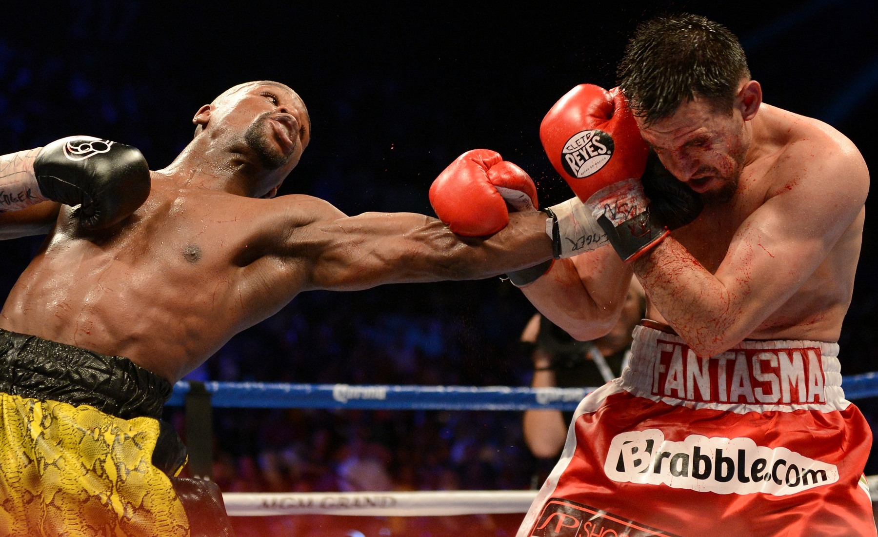The first couple rounds were fairly even, with Mayweather attempting to counter and time Guerrero, while Guerrero was attempting to drive Mayweather to the ropes and make it a rough fight. After the first couple rounds, Mayweather was in complete control, almost hitting Guerrero at will with right hand leads, counters, hooks, and effectively timing Guerrero the rest of the fight. Mayweather won the fight on all three scorecards 117-111.