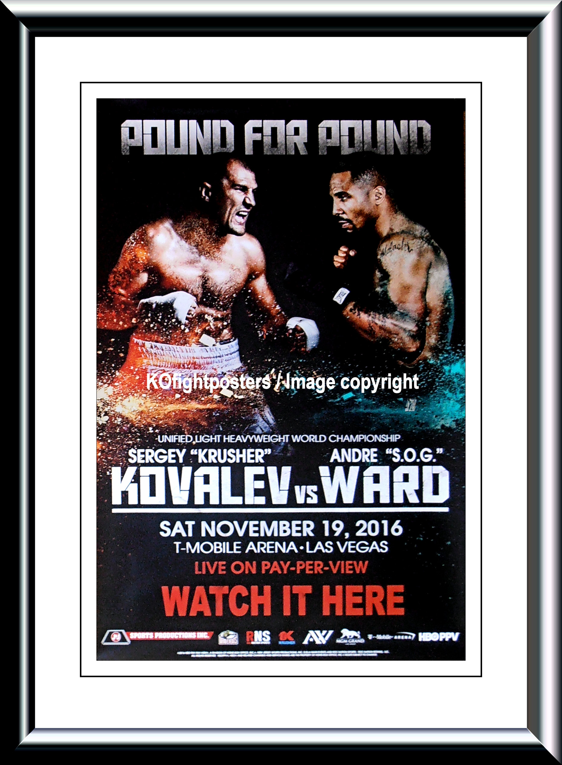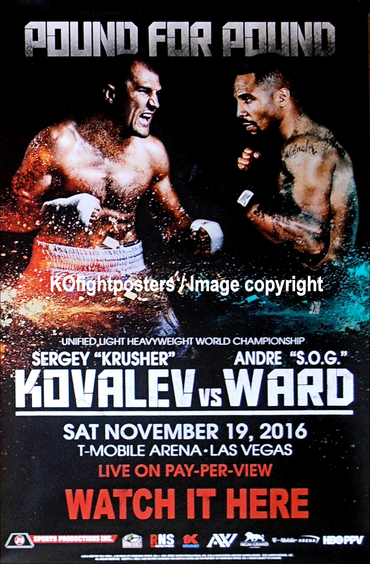 Description : Here we have an original full-size HBO boxing pay-per-view fight poster for the unified light-heavyweight world championship. T-Mobile Arena, Las Vegas, Nevada USA, 19th November 2016.
