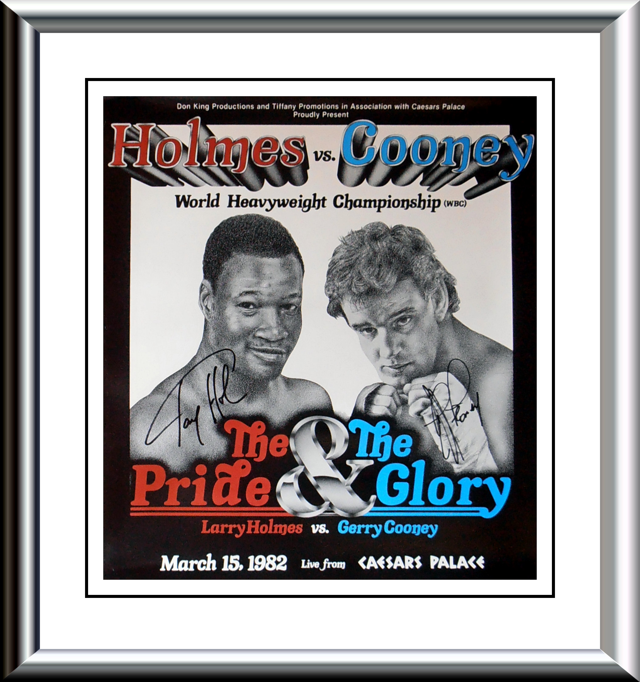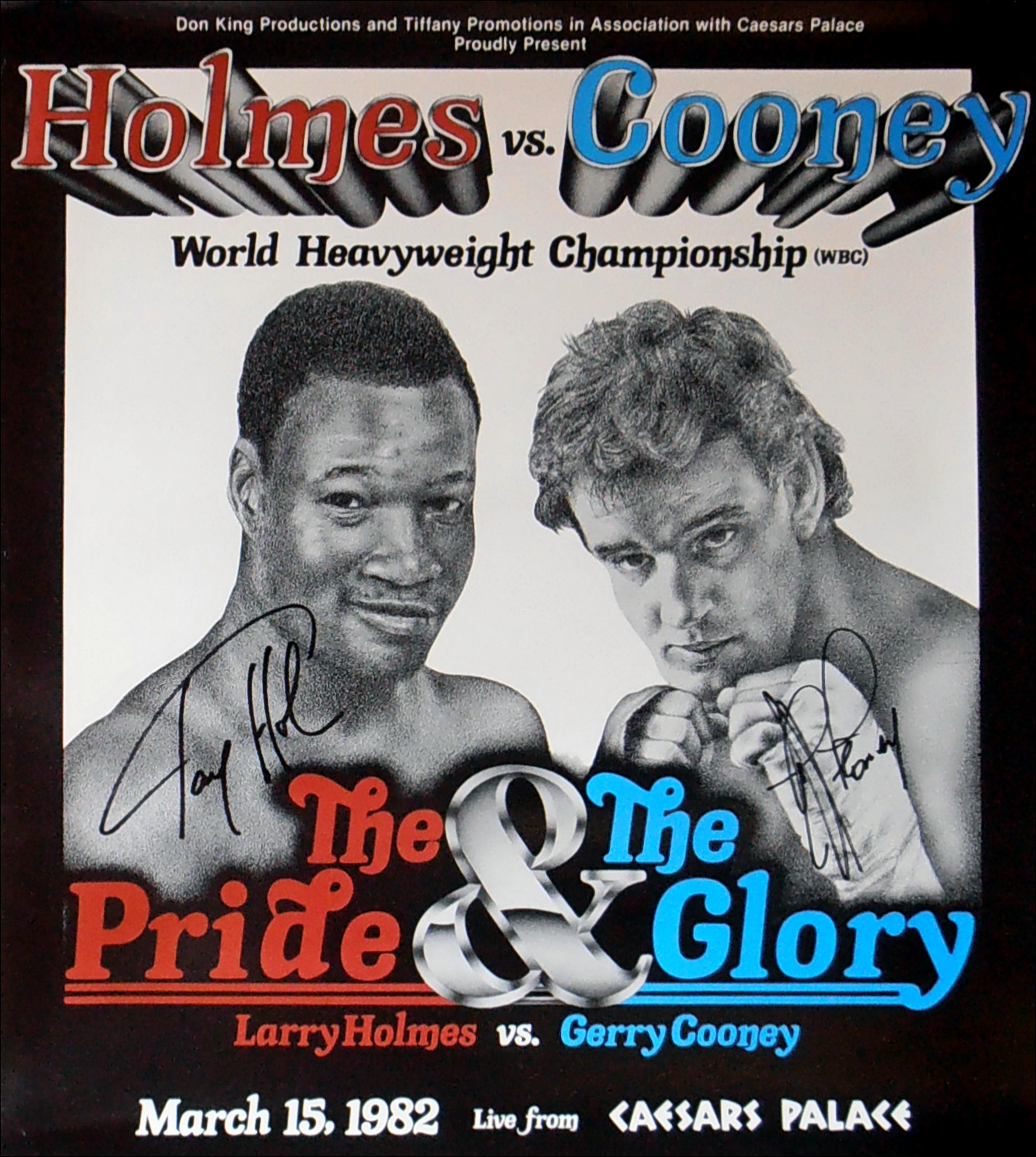 Description : Here we have an original Don King/Caesars Palace closed circuit poster. This poster has been signed by the WBC World heavyweight Champion Larry Holmes & the challenger, Gerry Cooney.