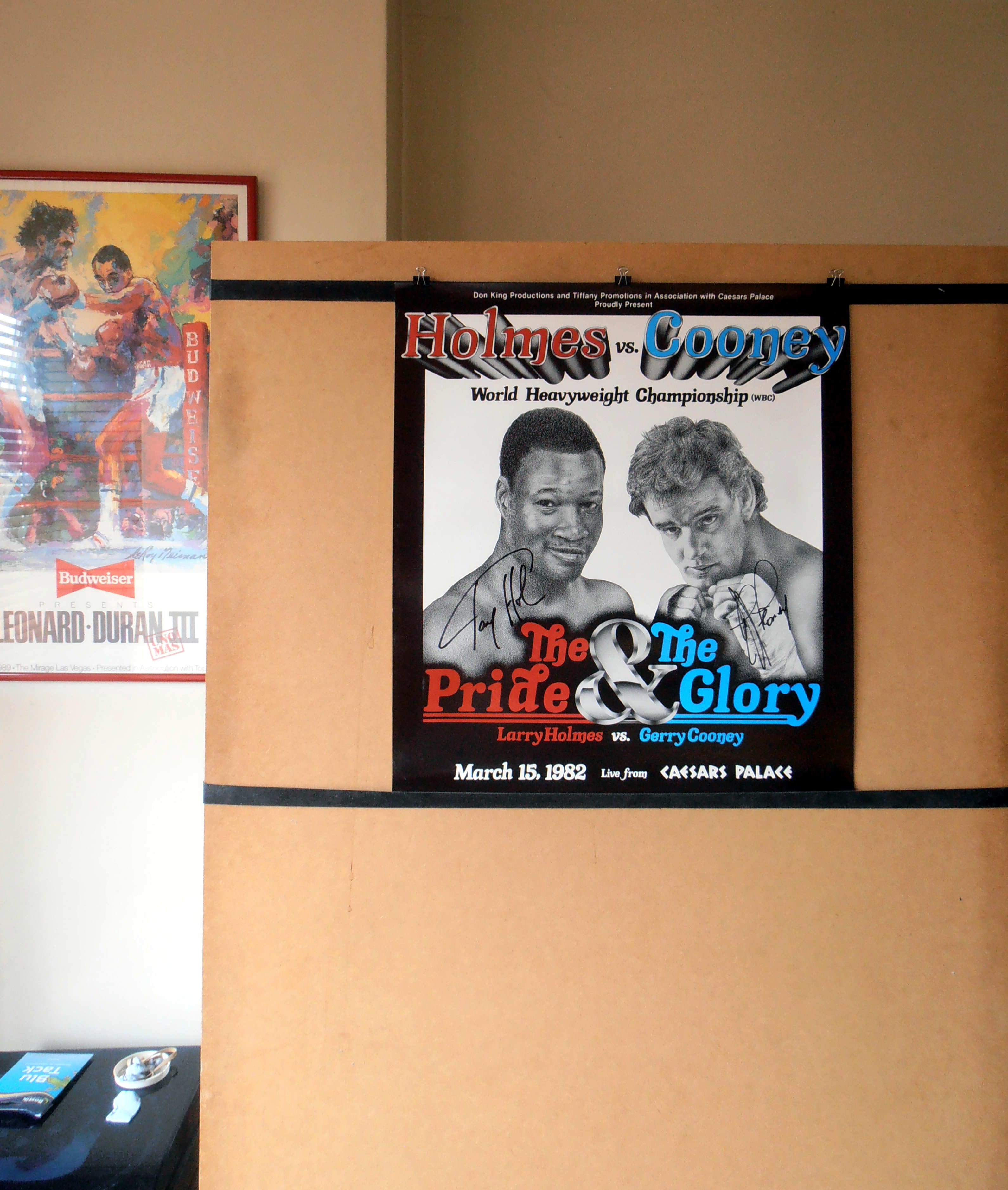 This original Don King/Caesars Palace closed circuit poster represented here has been signed by Larry Holmes, Gerry Cooney and comes with a letter of guarantee of authenticity from KOfightposters.com for a lifetime & beyond.