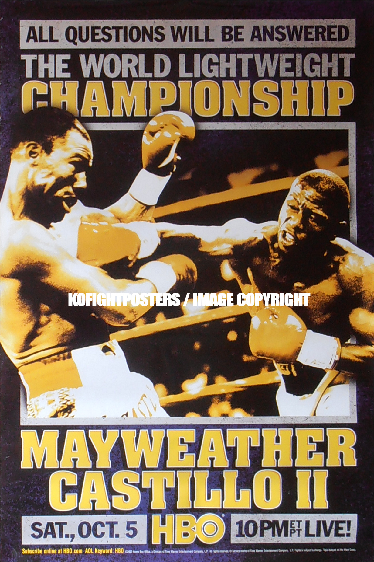 Description : Here we have an original full-size HBO boxing closed circuit fight poster for the WBC world lightweight championship title bout. This poster is from the CANCELLED DATE of 5th October 2002....