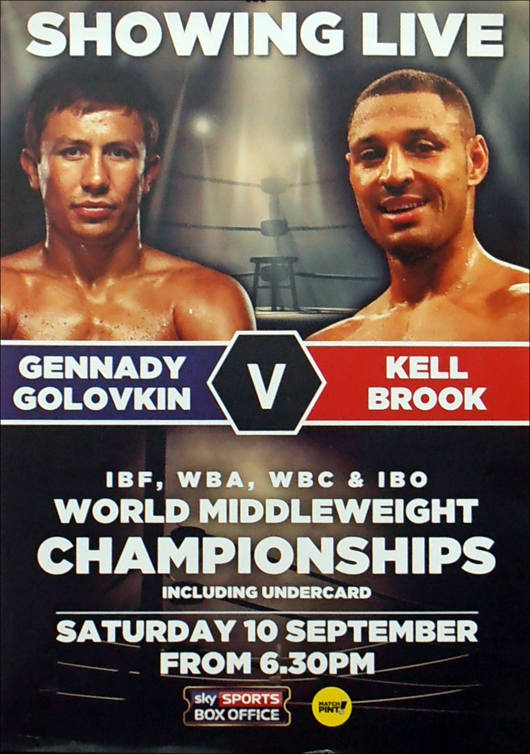 Description : Here we have an original SKY Box office boxing pay-per-view venue fight poster for the IBF, WBA, WBC & IBO world middleweight championship bout held at the O2 Arena, London, 10th September 2016.