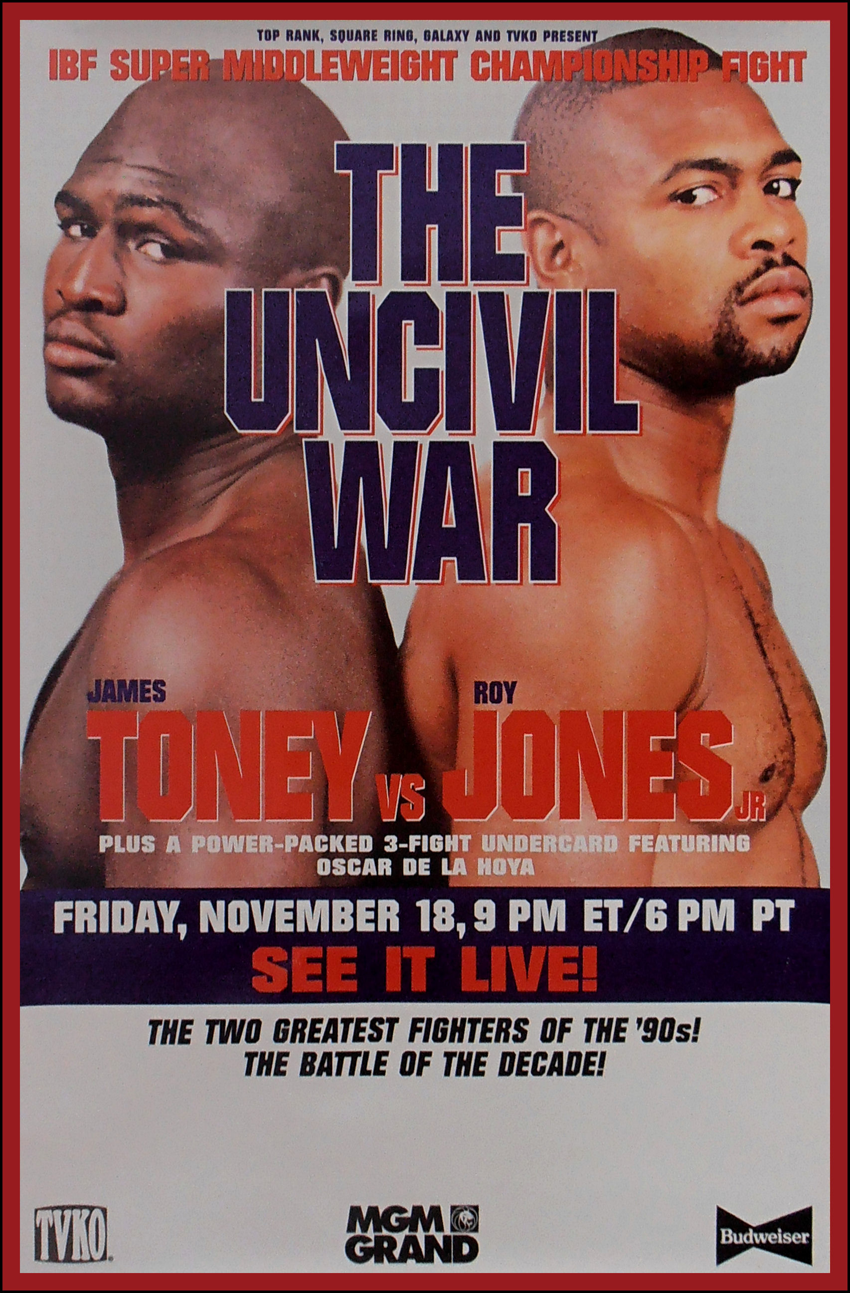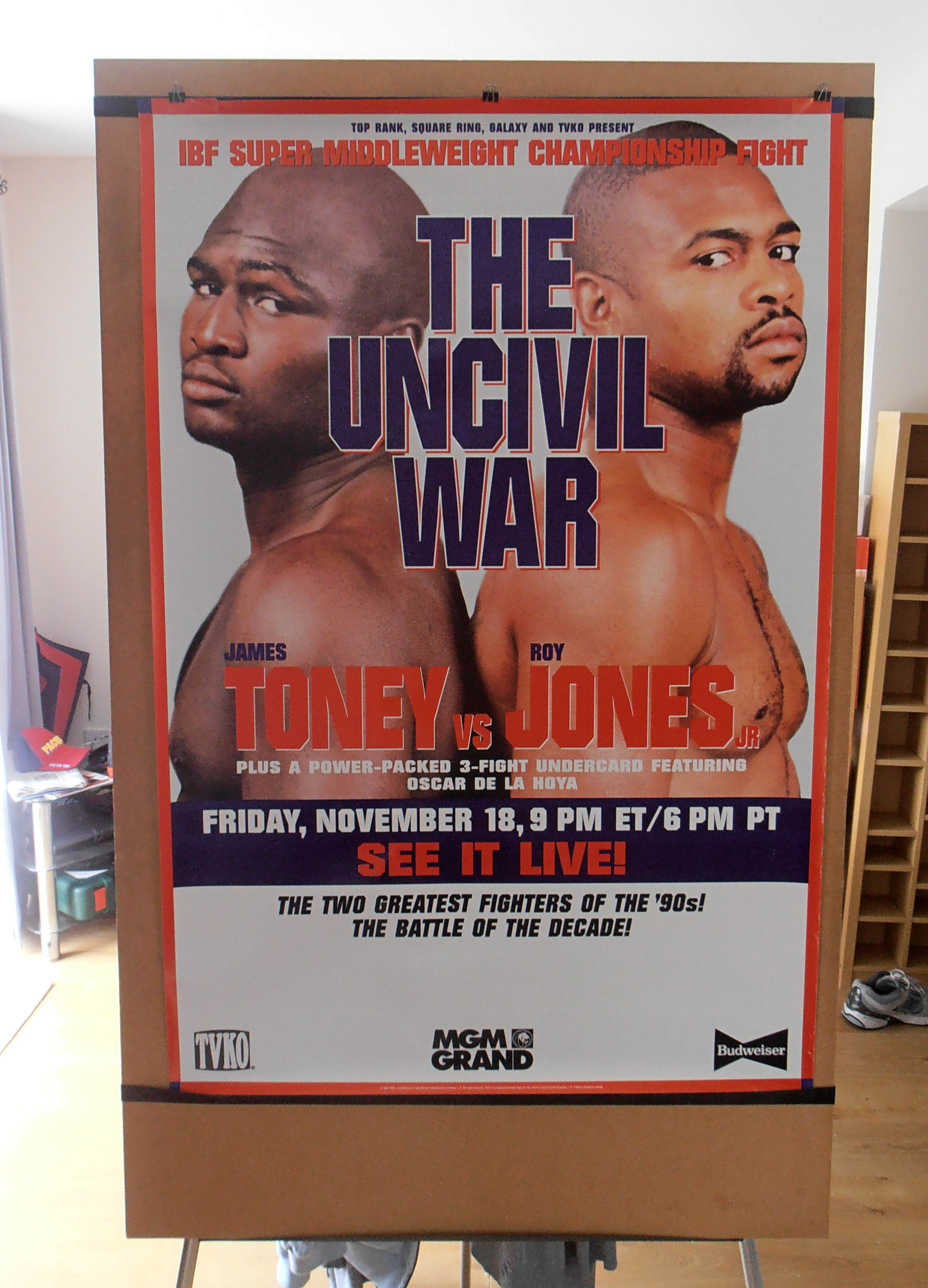 Description : Here we have an original official full-size TVKO boxing closed circuit fight poster for the IBF world super-middleweight championship title bout held at the MGM Grand Garden Arena, Las Vegas, Nevada, USA, 18th November 1994.