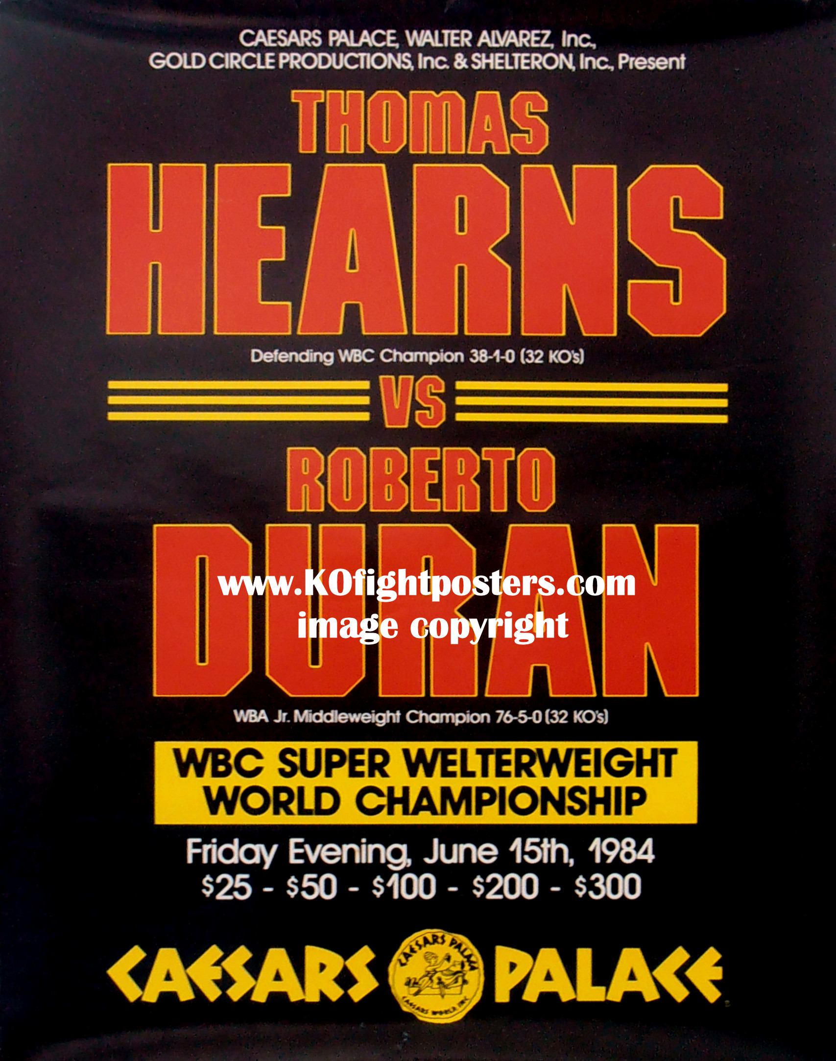 Description : Here we have an original vintage official onsite main event boxing fight poster for the WBC world light middleweight championship title bout to be held at Caesars Palace, Las Vegas, USA, 15th June 1984.