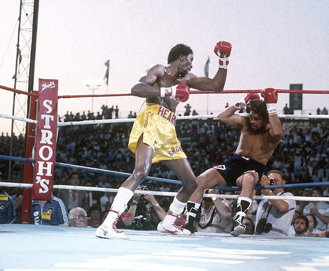 One of boxing's ultimate shocks when Tommy Hearns knocked out the legendary Roberto Duran, he became the first boxer to KO Duran, and is seen as his pinnacle achievement, earning him his second Ring Magazine "Fighter of the Year" award in 1984. Duran was the reigning WBA Light/Middleweight boss but was stripped of his version of the 154lb crown when he got into the ring with Hearns for failing to defend his WBA title in a mandatory defence against Mike McCallum.