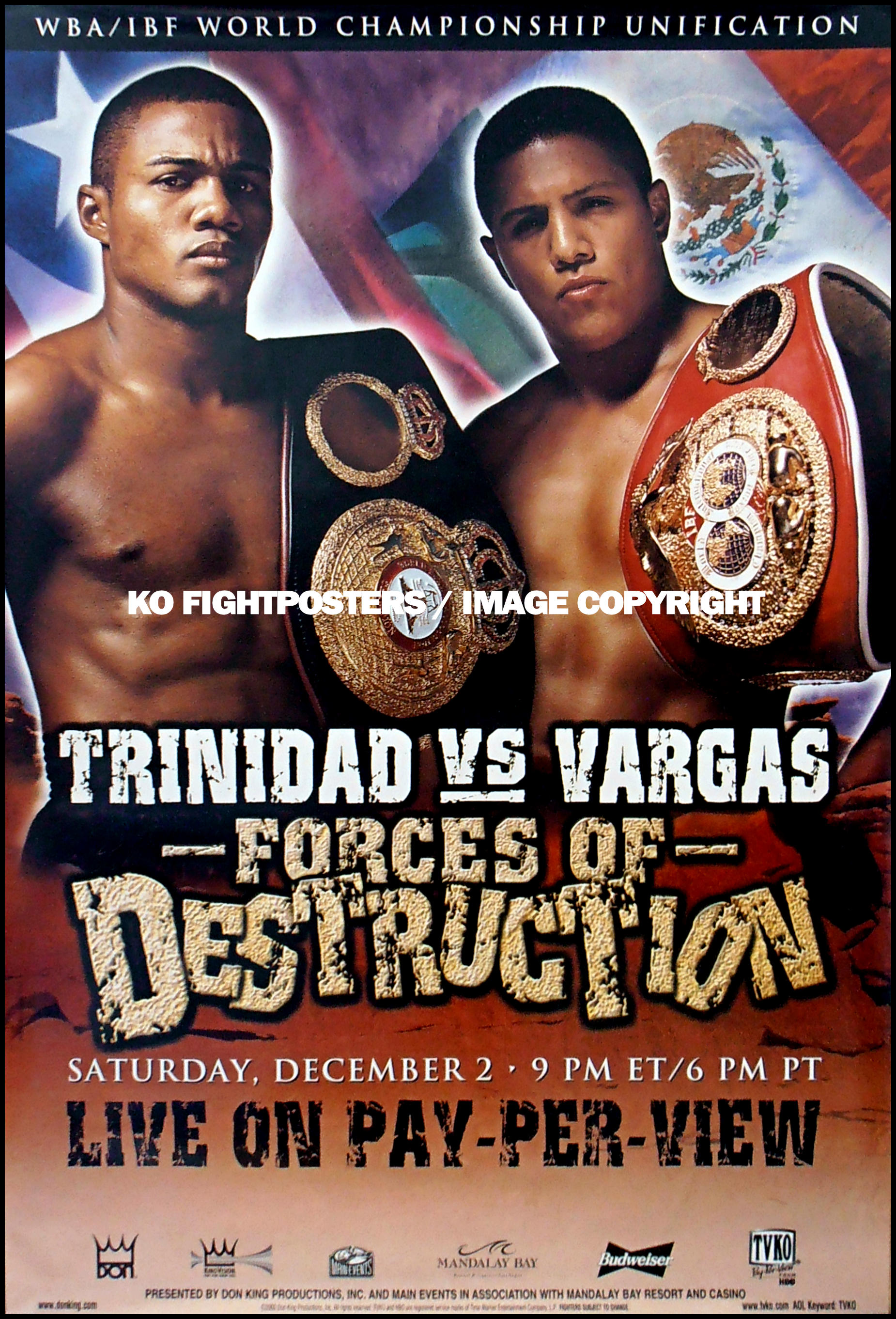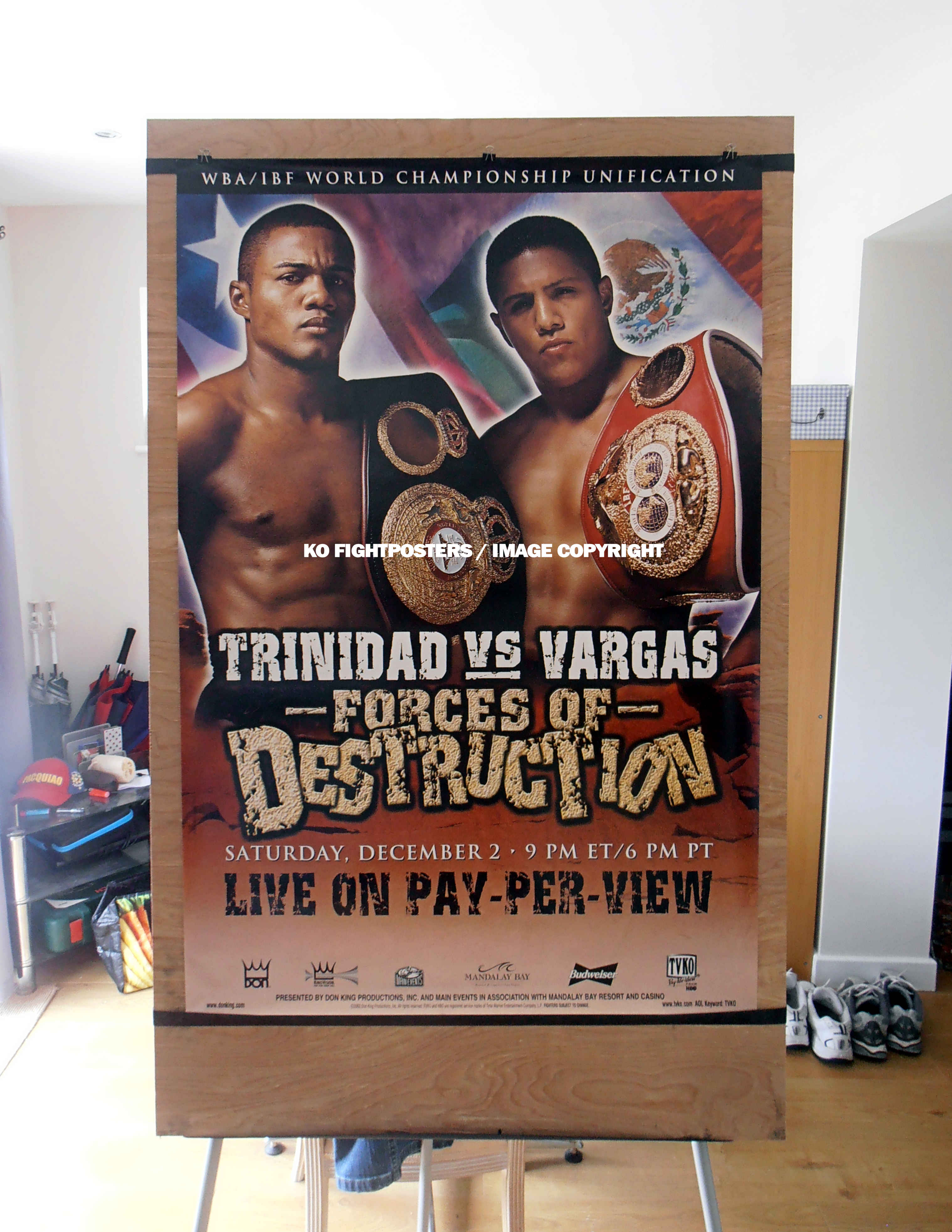 Description : We have here an original full-size HBO pay-per-view closed circuit poster for the IBF/WBA Light/Middleweight unification collision that took place at the Mandalay Bay Las Vegas on December 2, 2000