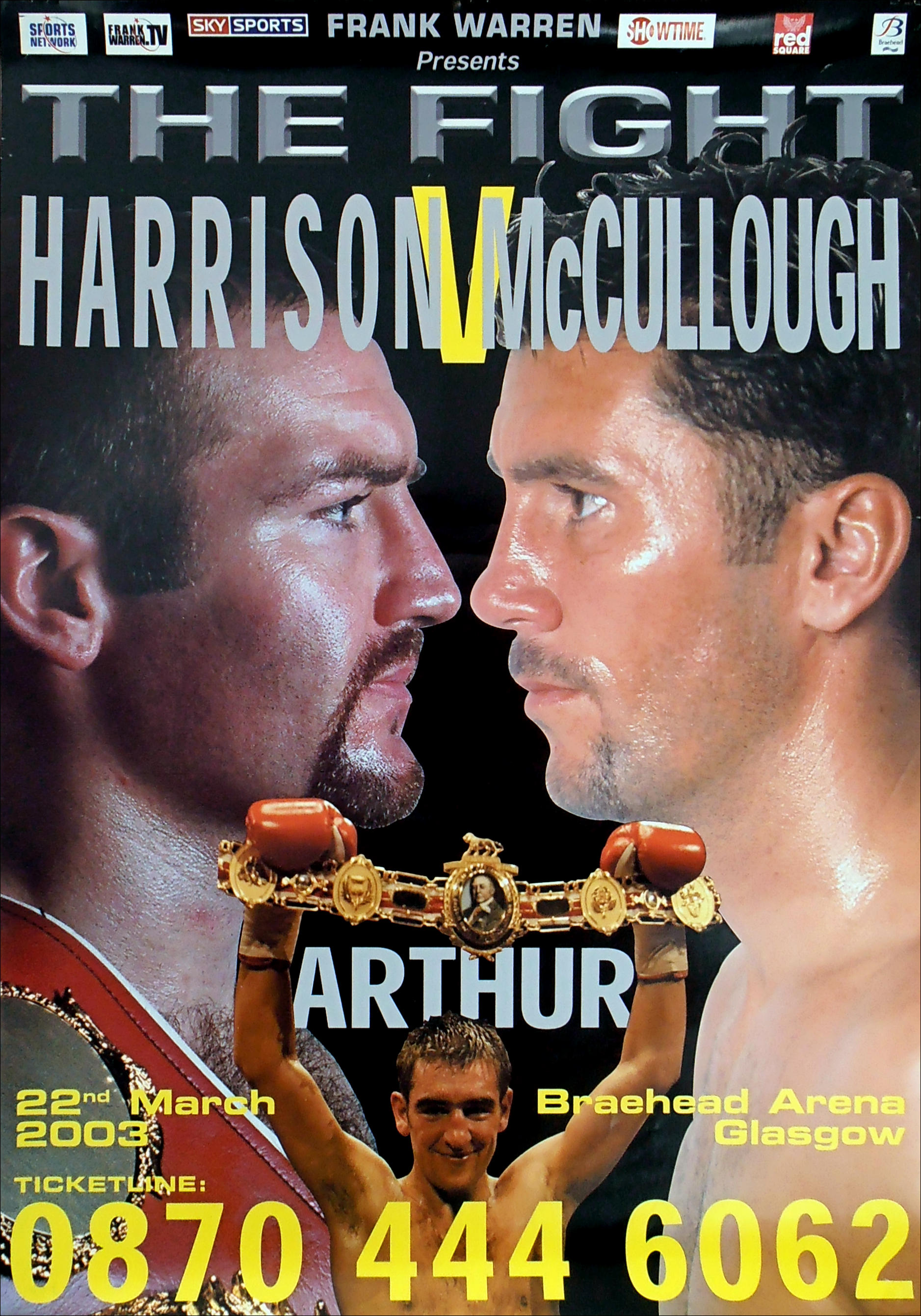 Description : Here we have the official Frank Warren promotions onsite boxing fight poster produced for the WBO World Featherweight Championship Title bout at the Braehead Arena, Glasgow, Scotland, United Kingdom, 22nd March 2003.