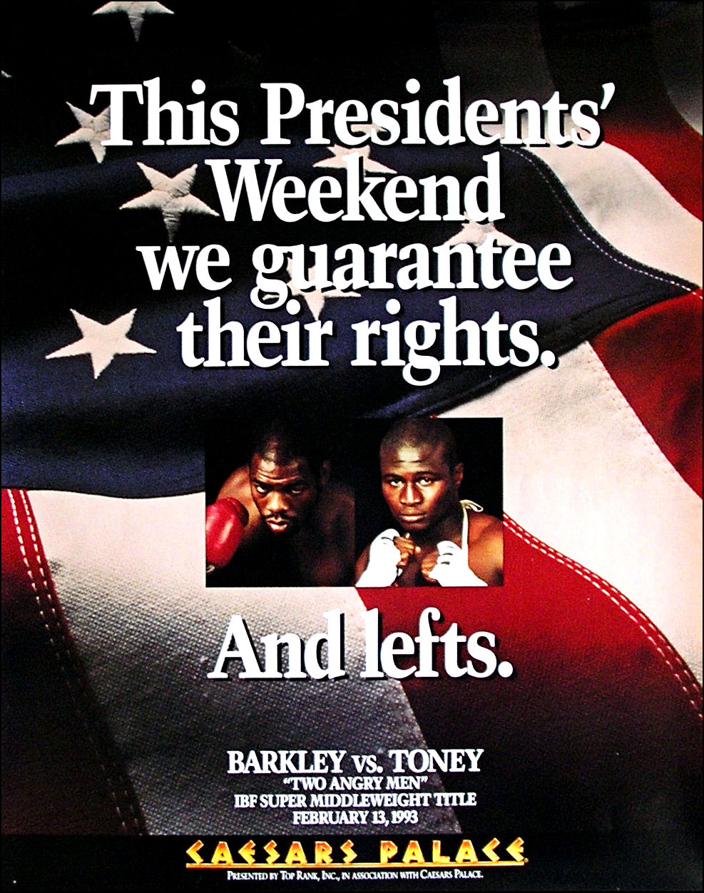 "The fight that James Toney fought against Iran Barkley was as close, I believe, to perfection as you can be in a boxing match." - ESPN Commentator Barry Thompkins.