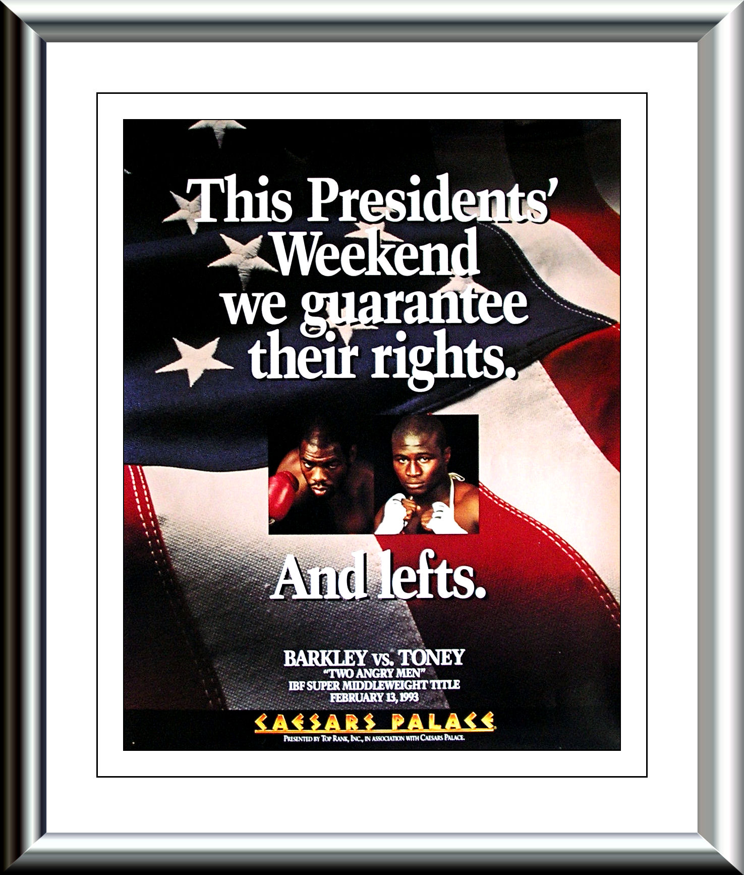 Description : Here we have an original super rare vintage official onsite main event boxing fight poster for the IBF world super/middleweight championship title bout to be held at Caesars Palace, Las Vegas, USA, 13th February 1993.