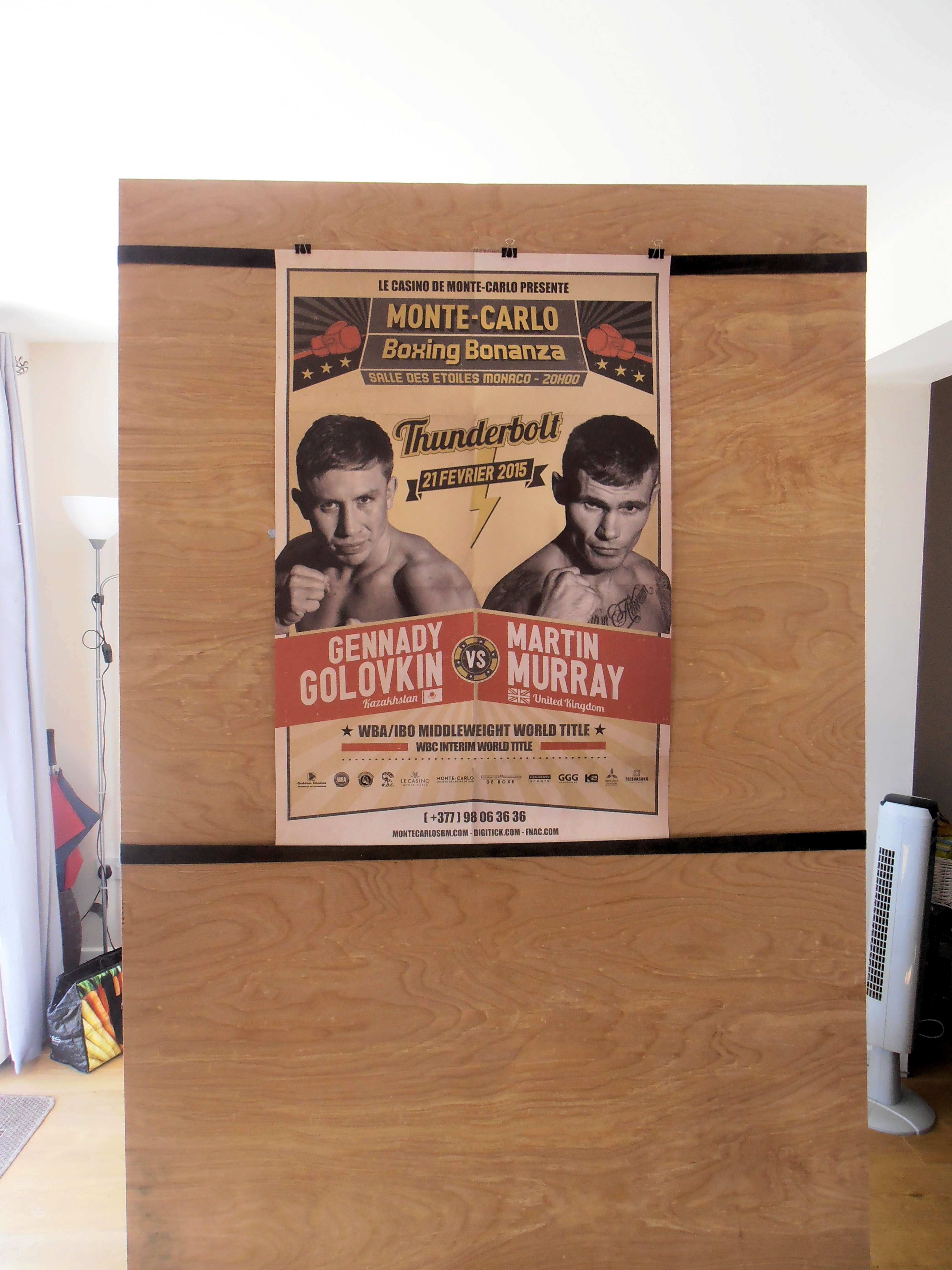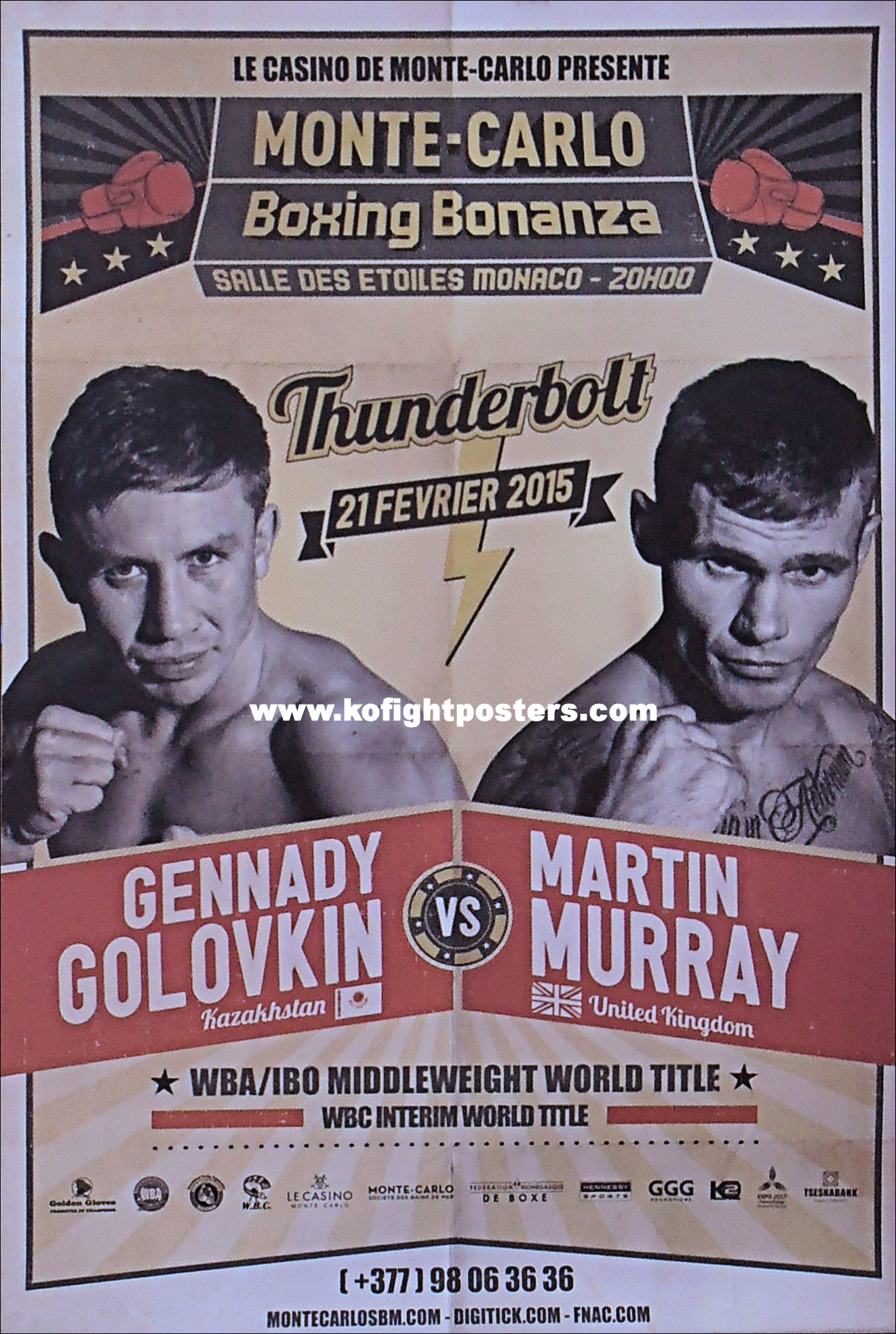 Description : Here we have an original official onsite main event boxing fight poster for the WBA/IBO & WBC Interim world middleweight championship title bout held at Salle des Etoiles, Monte Carlo, Monaco, 21st February 2015.