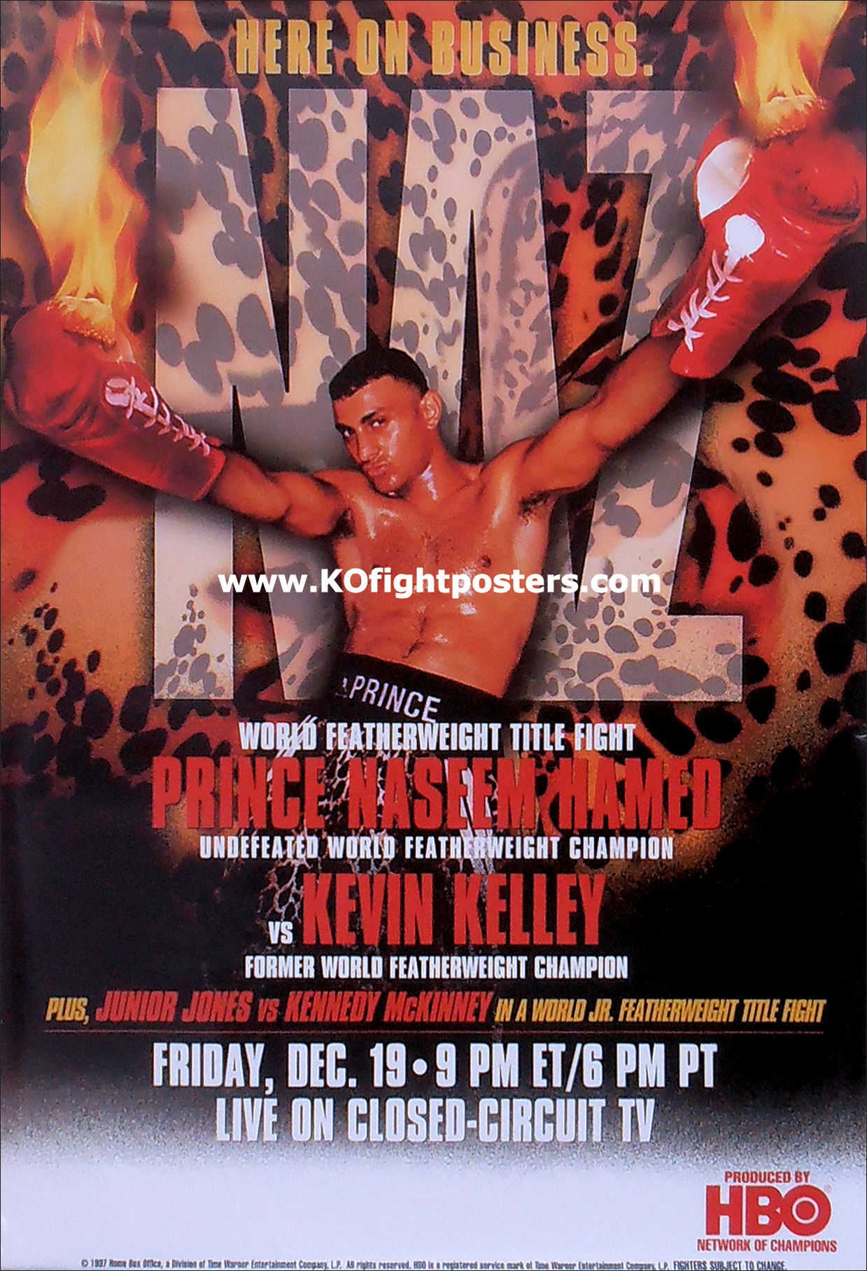 Description : Here we have a fabulous original full-size HBO boxing closed circuit poster for the WBO world featherweight championship title bout held at Madison Square Garden, New York, New York, USA, 19th December 1997.