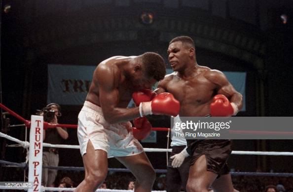The challenger Tyrell Biggs said he was not concerned about Tyson's reputation, my skills will offset his power. Well Tyson did plenty! He smashed Biggs to a pulp, Tyson was to say after the fight "I could have knocked him out in the 3rd round but I wanted to do it slowly, so he would remember this night for a long time." Referee Tony Orlando stopped the brutal hammering at 2.59 of round 7 so awarding Tyson the victory via technical knockout & a frightening brutal one at that for poor Tyrell Biggs who was never the same fighter again after that savage hammering at the hands of Tyson.