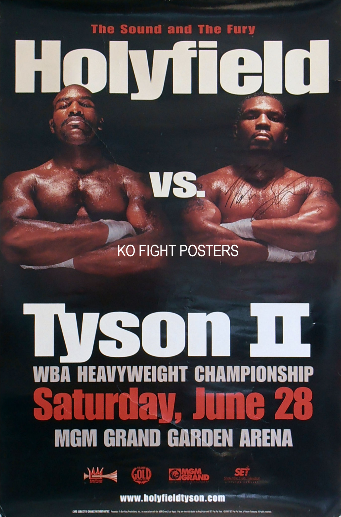This original Mike Tyson signed MGM Grand onsite main event poster comes with a letter of guarantee of authenticity from KOfightposters.com for a lifetime & beyond.