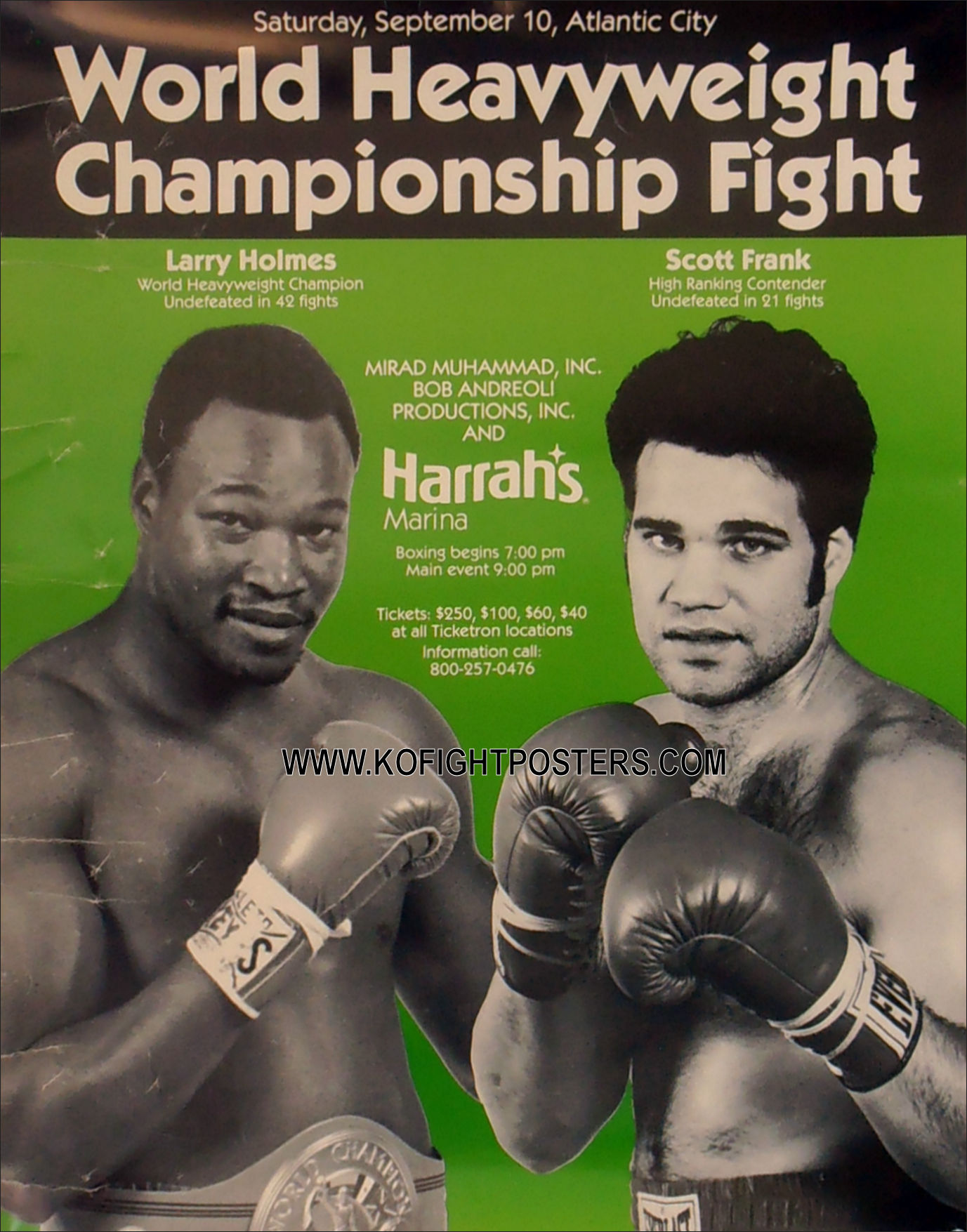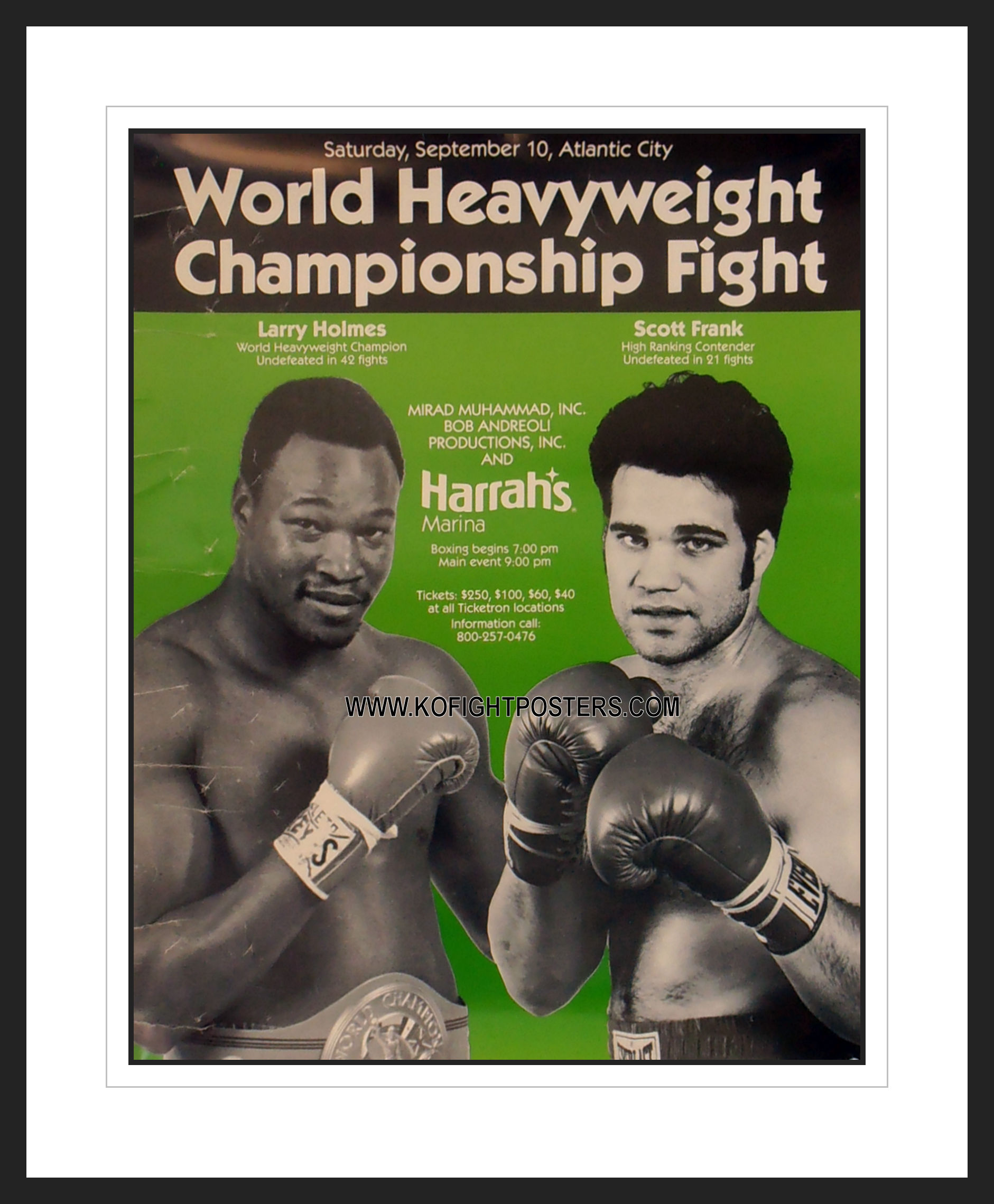 Description : Here we have an original super rare official onsite boxing fight poster for the WBC world heavyweight championship title bout. Harrah's Marina Hotel Casino, Atlantic City, New Jersey, USA, 10th September 1983.