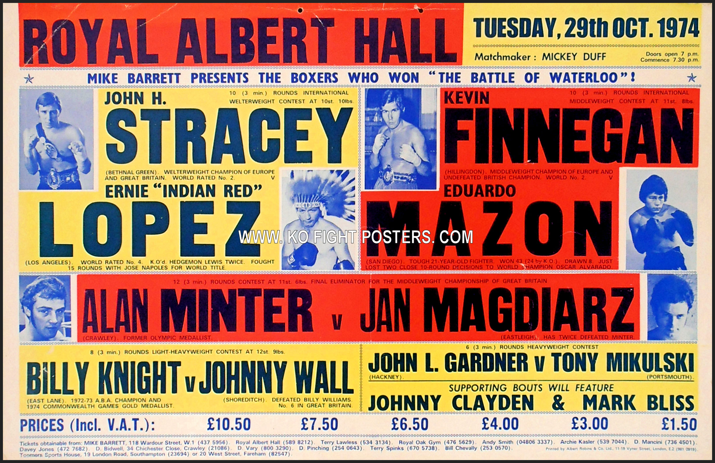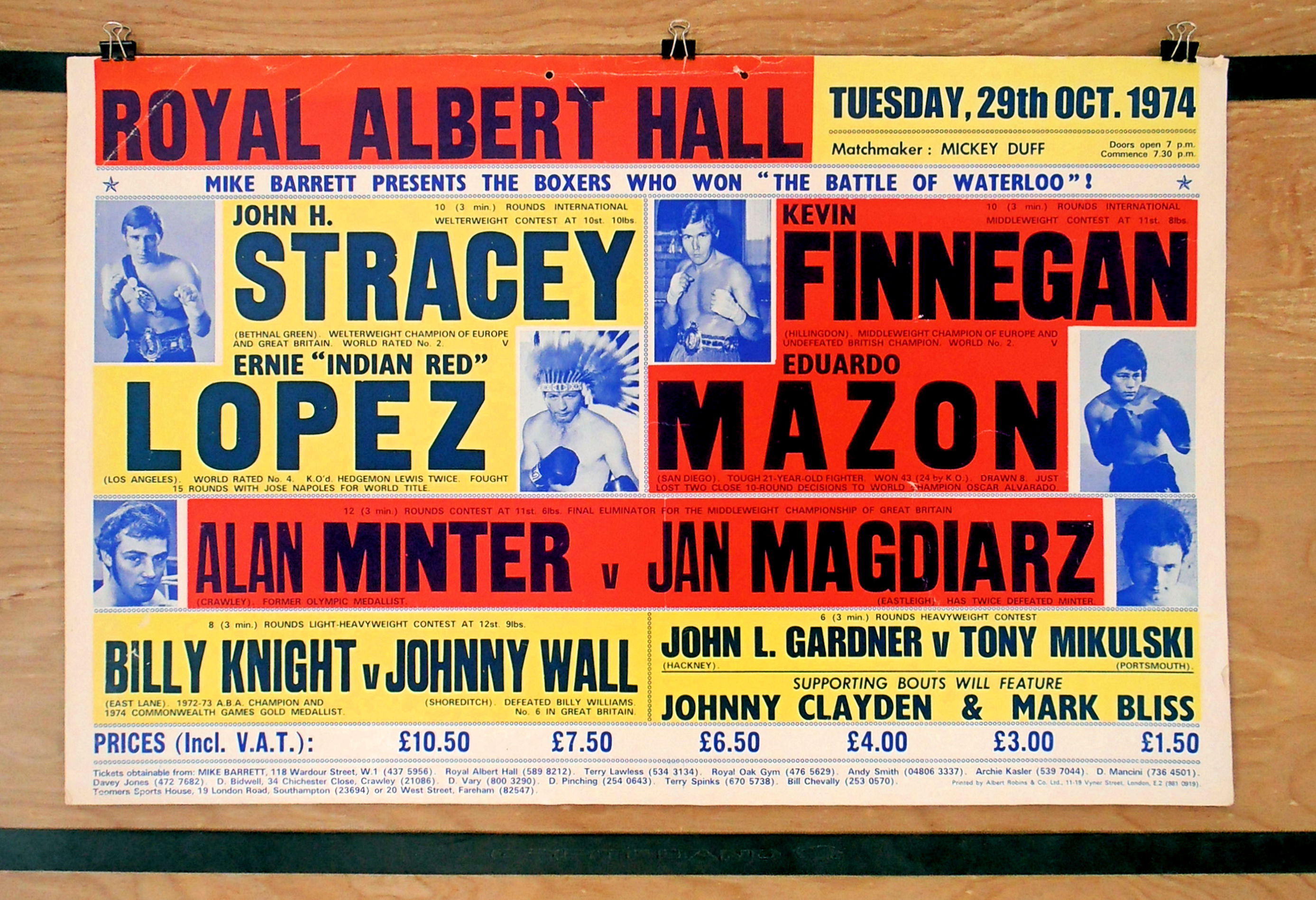 Description : Here we have an original super rare official onsite boxing fight poster from the Royal Albert Hall, Kensington, London, England, 29th October 1974.