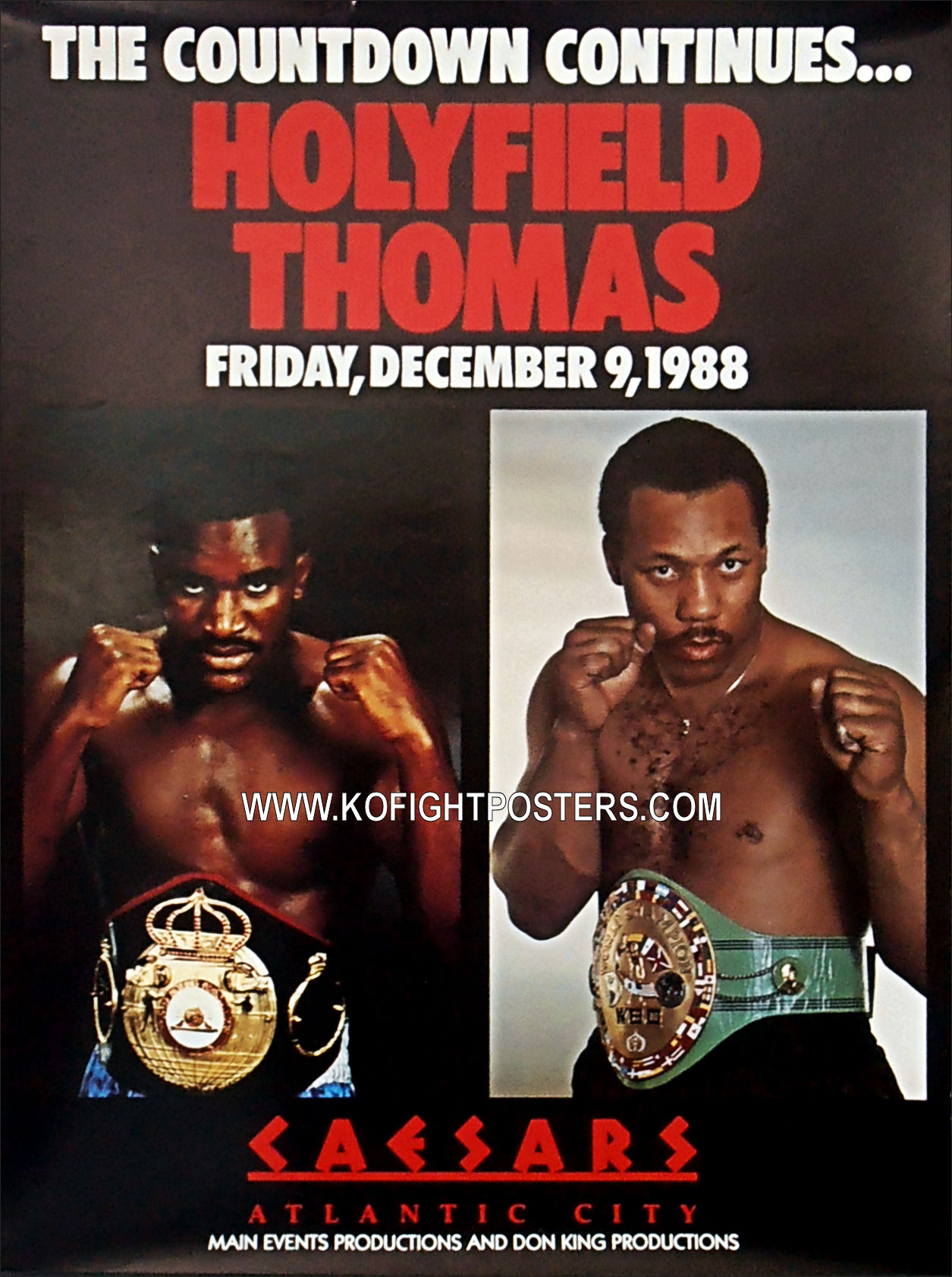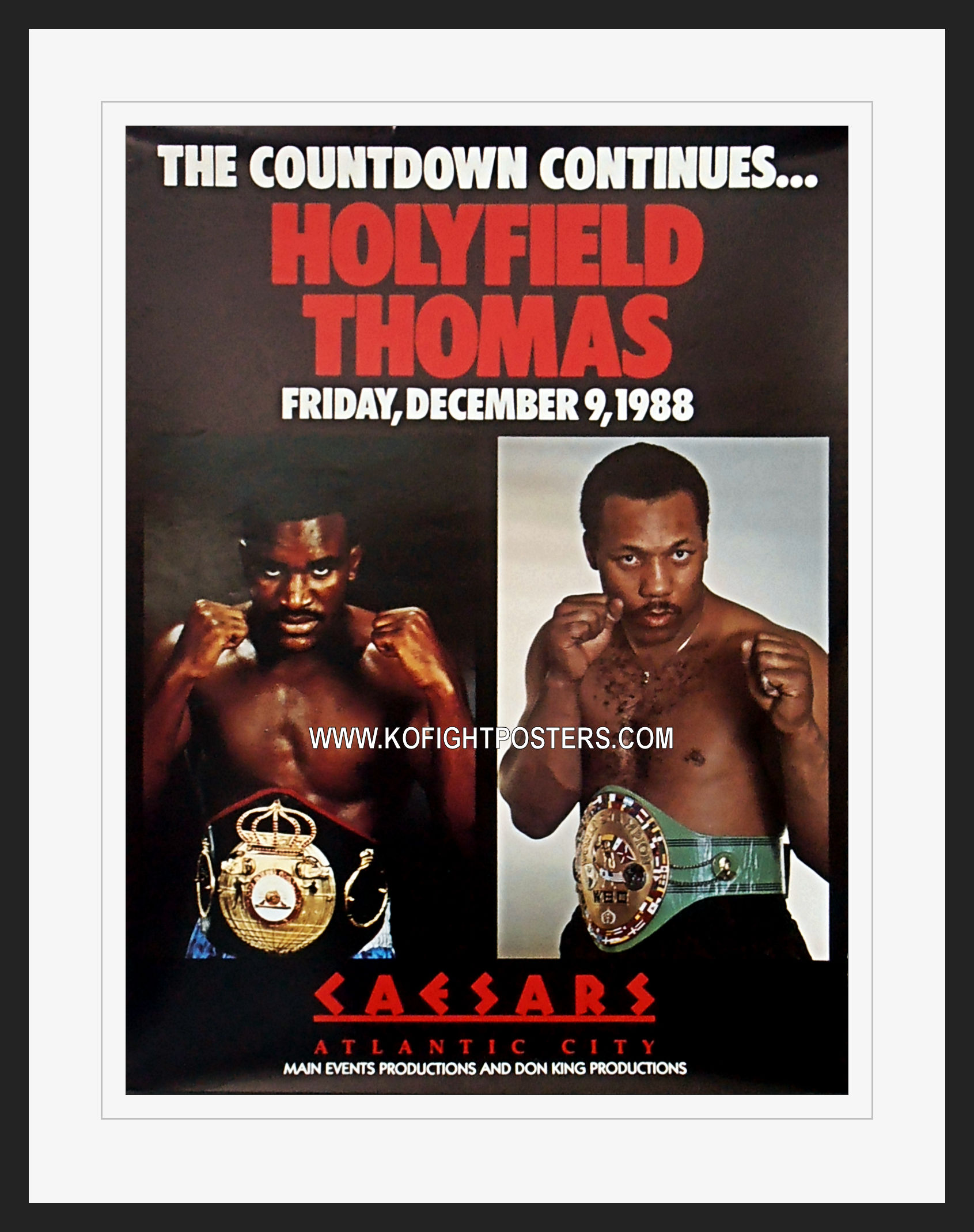 Description : Here we have an original official onsite boxing fight poster for the 10 round heavyweight non-title bout. Convention Center, Atlantic City, New Jersey, USA, 9th December 1988.