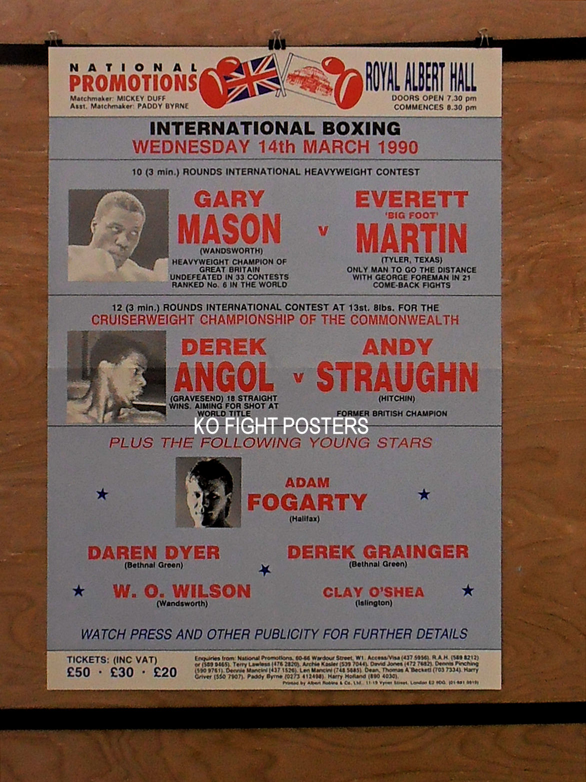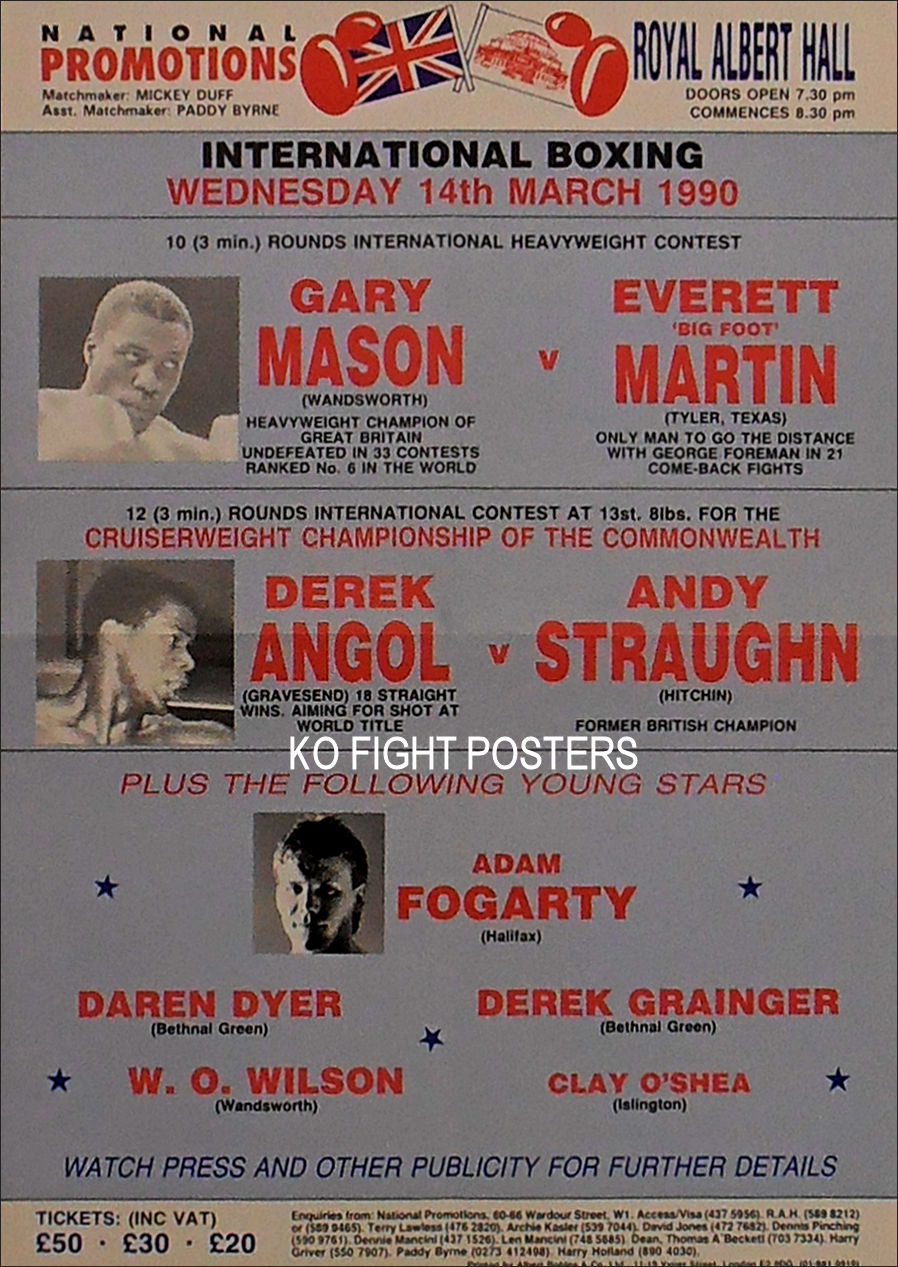 Description : Here we have an original official onsite boxing fight poster for the commonwealth cruiserweight championship. Royal Albert Hall, Kensington, London, England, 7th May 1986.
