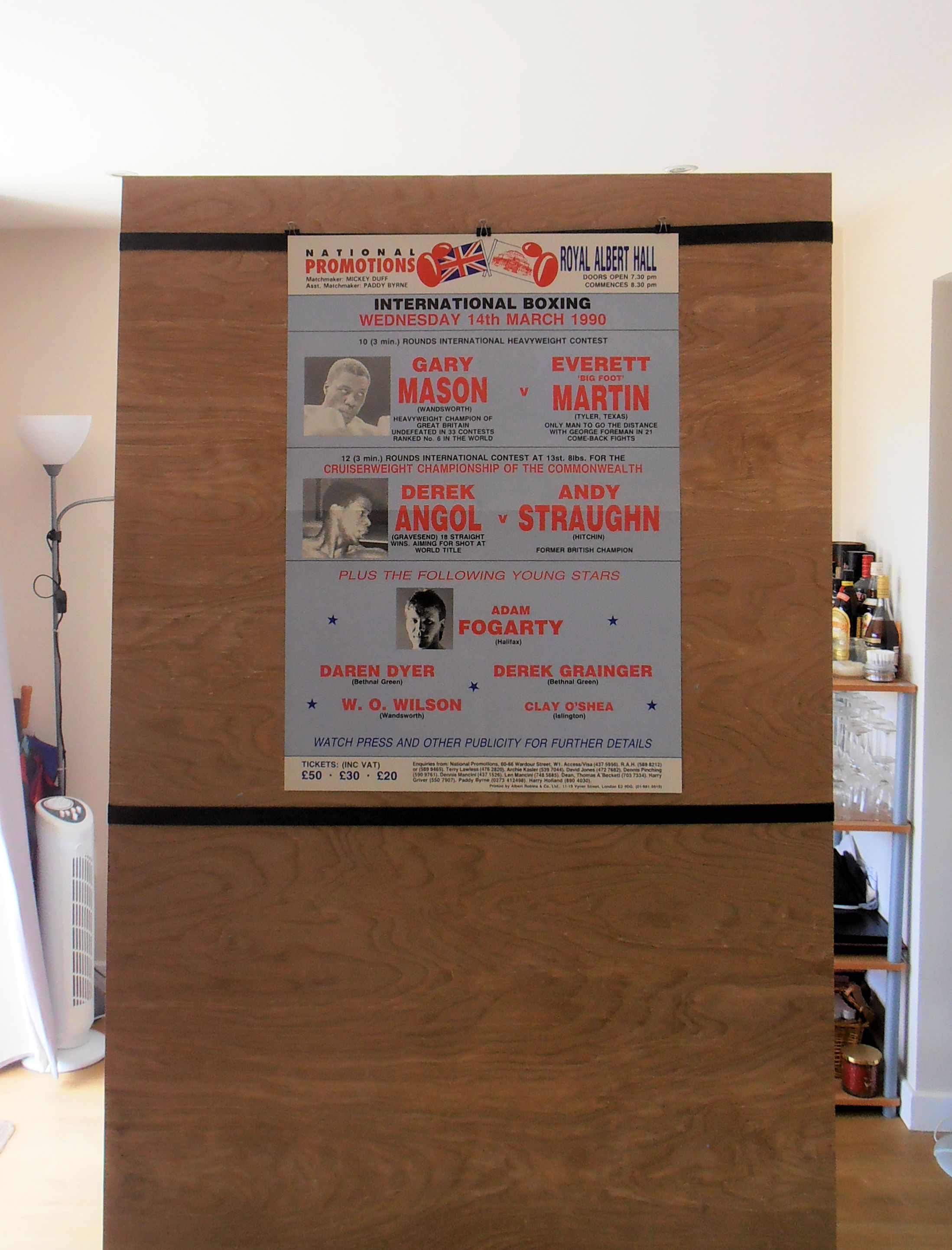 Wandsworth local Gary Mason won a points decision over his American opponent in a 10 rounder. Gary Mason was diagnosed with a detached retina following this fight, which lead to a short retirement. He was cleared to fight again following corrective surgery.