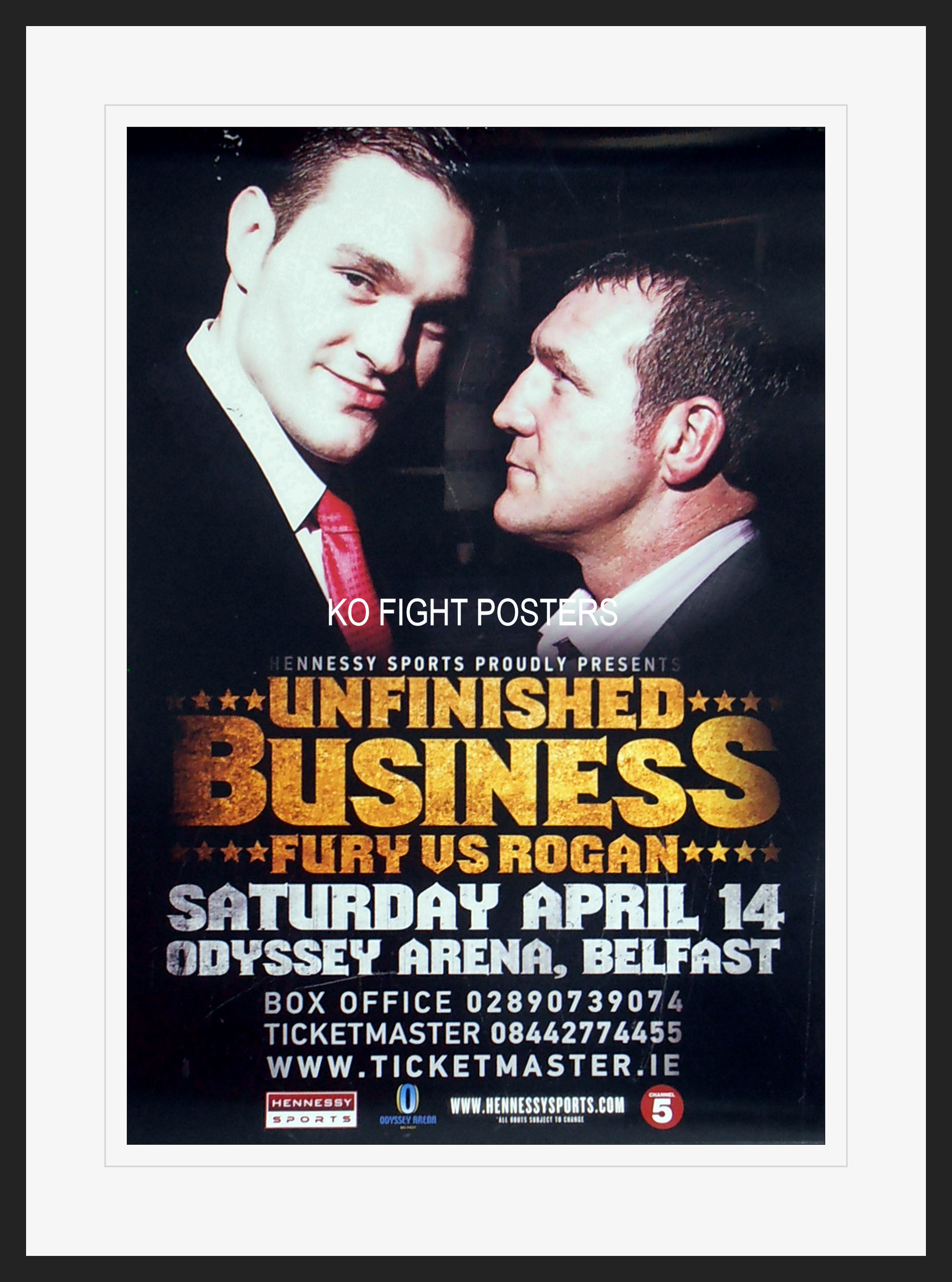 Description : Here we have an original official onsite boxing fight poster for the Irish heavyweight title. Odyssey Arena, Belfast, Northern Ireland, United Kingdom, 14th April 2012.